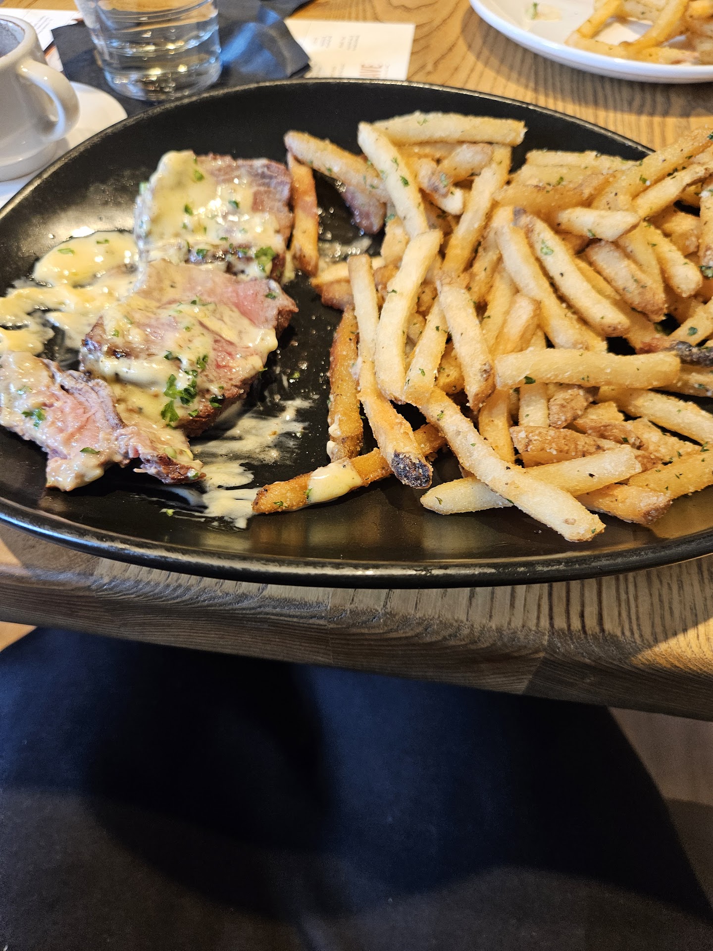 I ordered the Steak frites, cooked medium rare, and it was absolutely delicious, easily the best meal weād had since arriving. It came with truffle fries and asparagus. My only small critique is that the fries portion was a bit much, and I wouldāve loved more asparagus to balance the plate. Other than that, the dish was perfect.