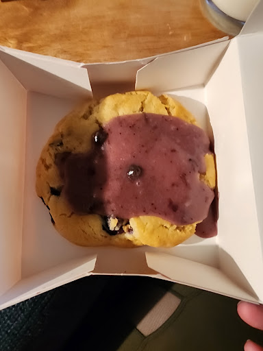 Read moreOrdered online. Have done before w no issue. Think absurd you default to a $2 tip when they don't take order or talk to you half the time other than the name (and price of cookies, Crumbl pay to bakers should be high). This time order switched from pickup to carry out (which wasn't an option to pick). Then arrived and guy is alone working. Finishes cookies and preps two out three cookies. Bring them over, no hi just pick something else no blueberry ones. I say it wasn't when I ordered, any way I can to get one wait? He said about 10 minutes and I say no problem as I don't want another flavor (got the other 2 I wanted already). I said oh will it need more time to cool - he says no 5 m to cook, 5 m to cool. So I wait - did the questionnaire on app and was on my phone. He helped another customer. Got my cookie and e didn't show me. So blueberry glaze ran and no butter cream dollop I got home. So disappointed in this being incomplete after waiting. He didn't seem pleased I didn't take another one instead so not sure if it was intentional for waiting / getting what I ordered or just rushing and forgot. Probably will not go back to the location or at very least check them all before going. (Wanted to try that cookie most of all as mom got it earlier in the week and said how good it was w the glaze and buttercream.)