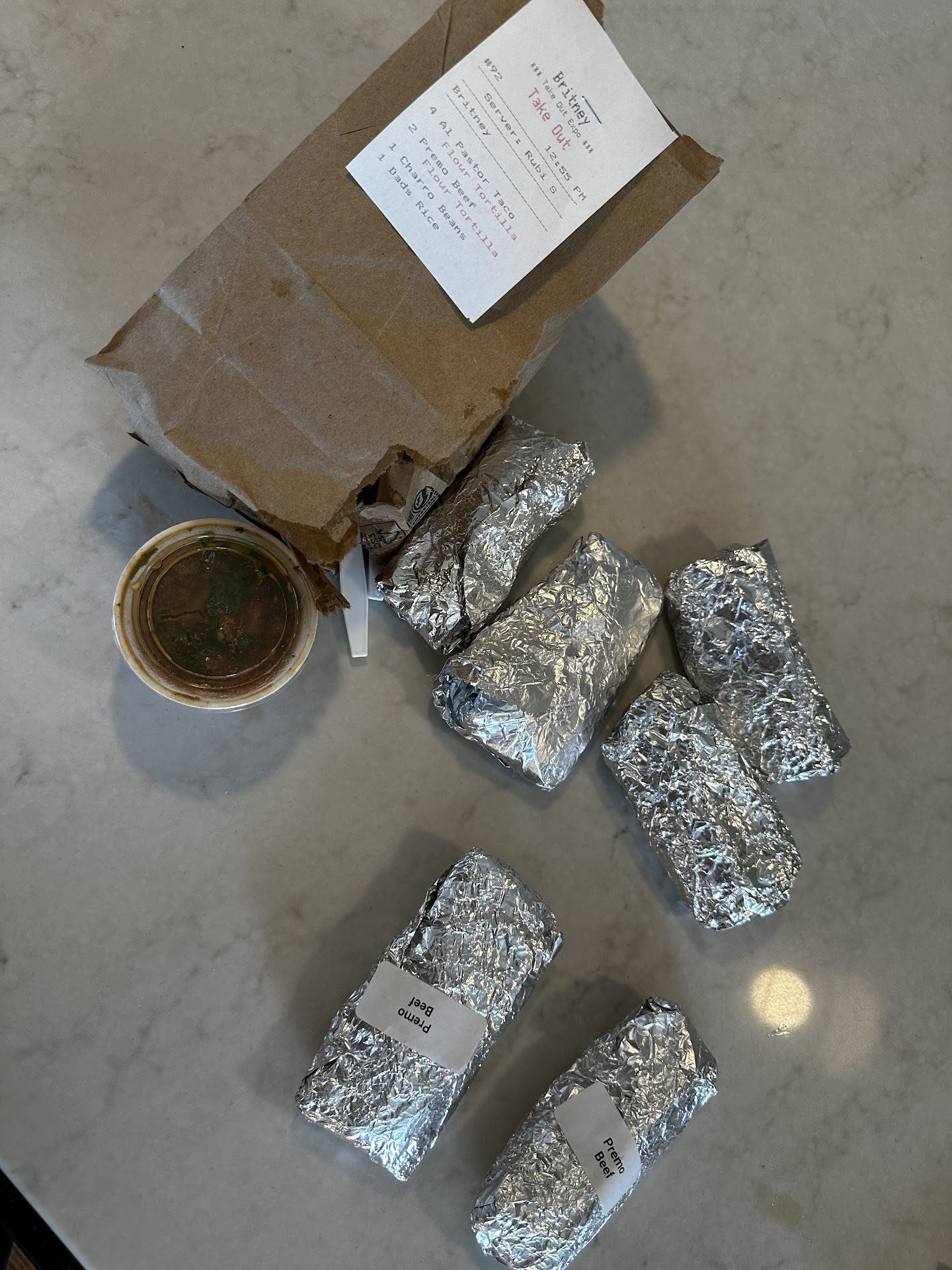 When I got home and opened my bag, I was SO disappointed they forgot my rice and beans. I was most excited for that.