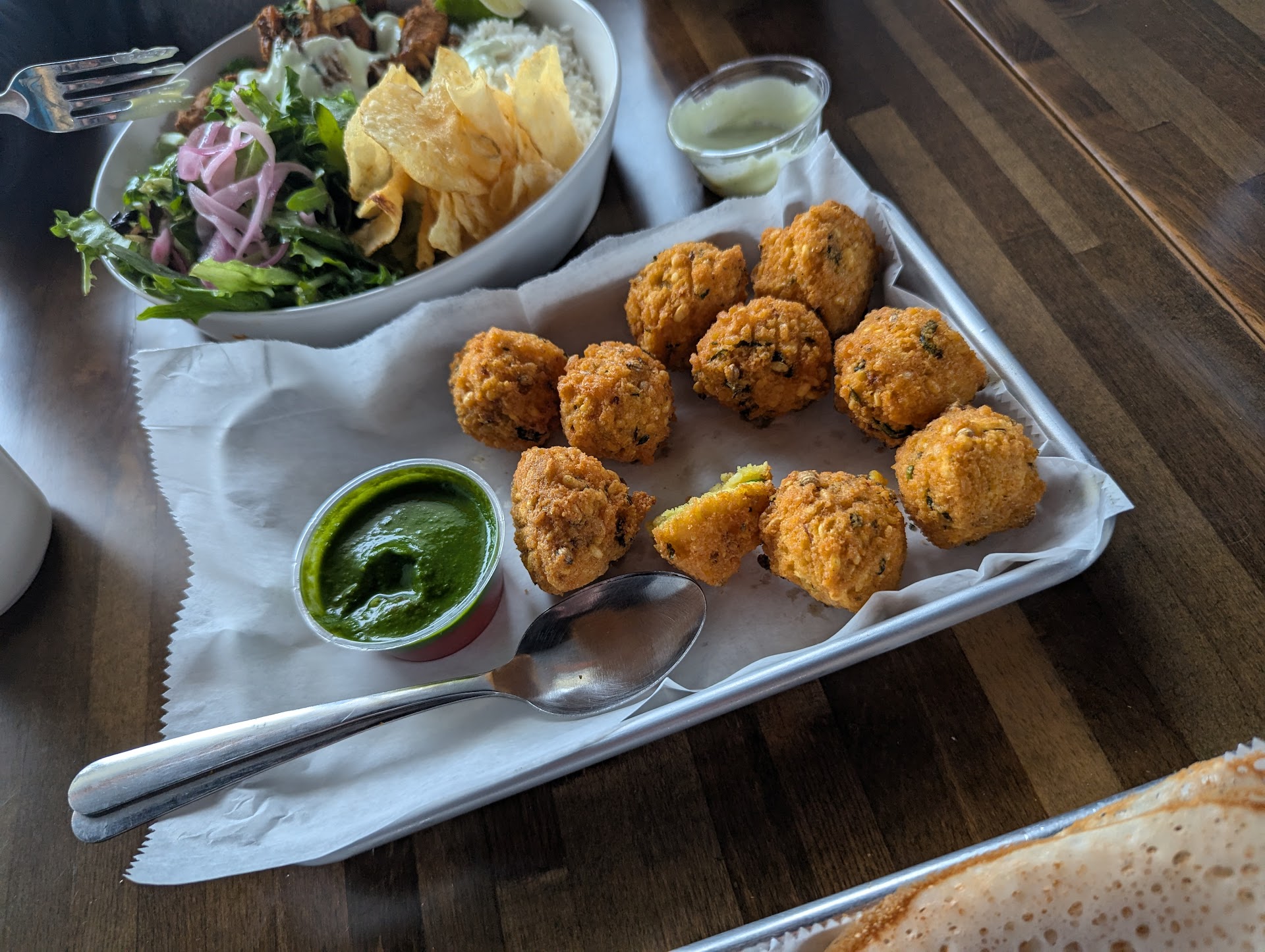 Read moreJust ate here yesterday and this place is a little gem! It’s counter service and has about 6/7 tables to sit and eat. It’s South Indian food, so if you’re looking for the typical chicken tikka you won’t find it but what you will find is a variety of South Indian street food that will rock your palate. If you’re vegan / gf / veg or have any other food sensitivities there are sooo many options. I had the Bahaji which was the perfect amount of spice and was really enjoyable. The carrot dessert was really delicious. It was like the inside of a carrot cake but just carrots. Would definitely recommend this place to anyone who enjoys Indian food and looking for something new and also those who have any dietary...