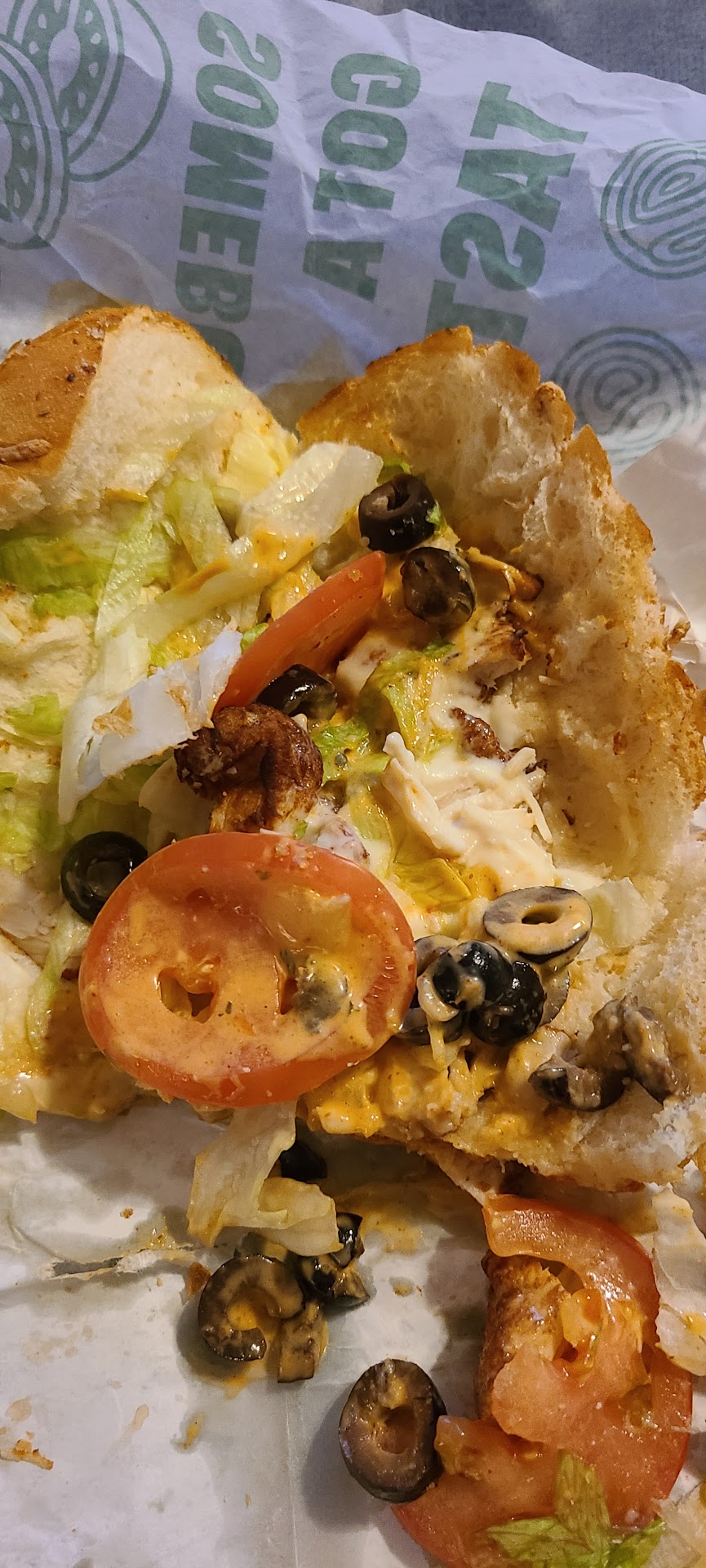 I either get a foot long roasted chicken on Italian with pepper jack cheese, onion, green peppers, jalapenos, sweet onion sauce and LOTS of salt and pepper. Or, I get the Italian on wheat with the same toppings except I get oil and vinegar instead of the sweet onion sauce.