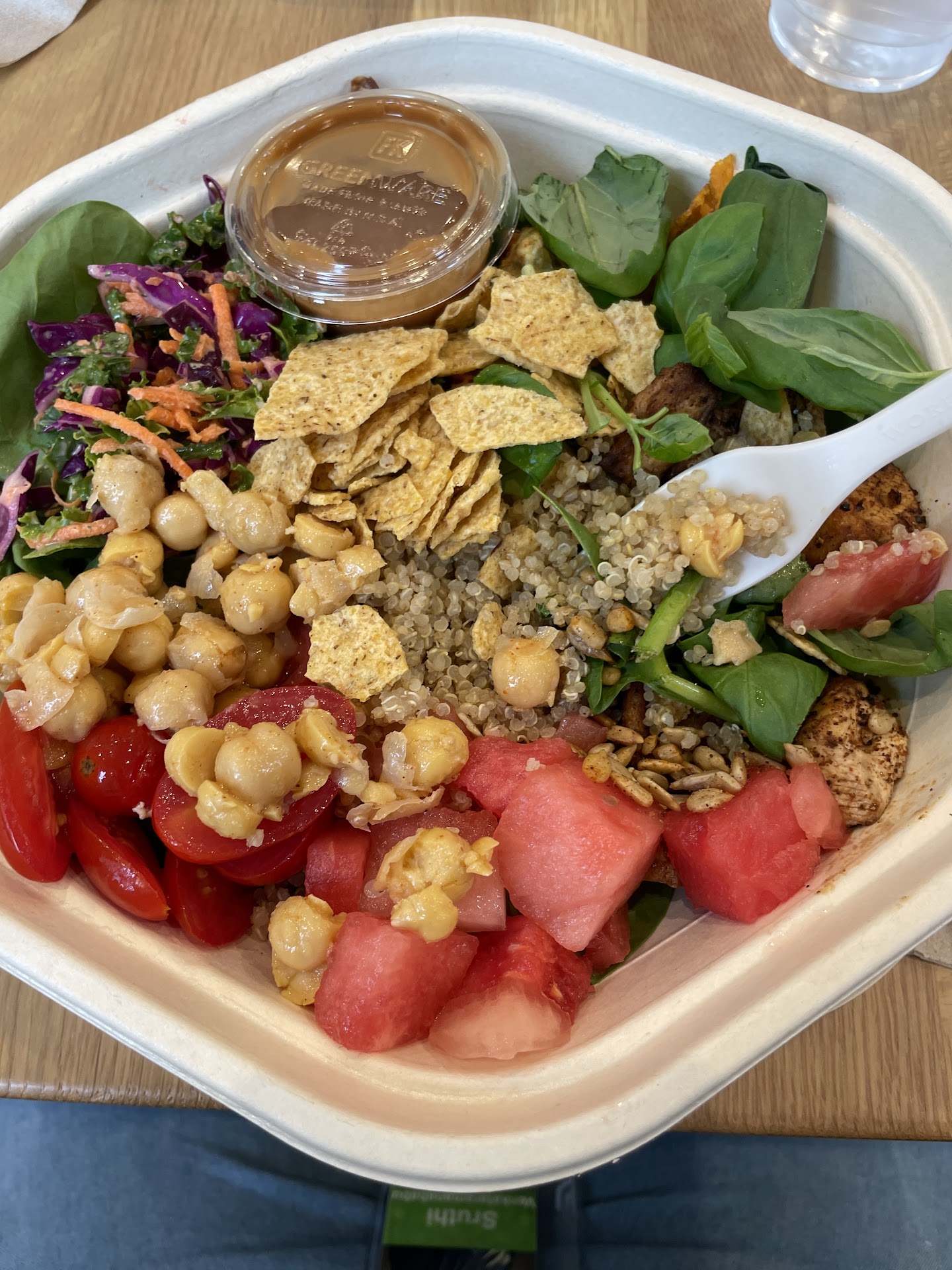 I like the build your own bowl option and I put in a ton of veggies and plan protein in mine. Their focaccia was very ordinary, cold and dried out and hard to even bite into - super bummed because I was really looking forward to it. The positives were that the vegetables were fresh, and the grilled tofu was great.