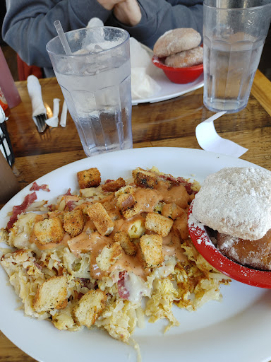 Read moreI grew up in the area and this is not our normal go-to for breakfast when visiting but the reviews and eclectic menu made us excited to try it. We came with a group of six and that was a mistake. Our estimate wait time of 30-35 minutes stretched to over an hour. Not entirely the restaurants fault that two moms with a gaggle of young children parked in a table for over an hour, but there is only one other table that can accommodate 6 people or more. The other group stay even longer. Short story, if you have more than four in your party this just isn't the place imo. Once seated, we ordered immediately having seen other reviews where the orders take at least a half hour. That timing held true for us on our visit. So in total it was over an hour and a half before we got our food. The positive side was the food ranged from good to excellent with most of it being in the latter category. I had the Elvis Presley and it was great. The cinnamon bun french toast was equally popular. The only one that was not great was the Ron Swanson because it was surprisingly light on the actual meat content. It was still good just not what was expected. The service once seated was very good. In summary, very good food - just expect to...
