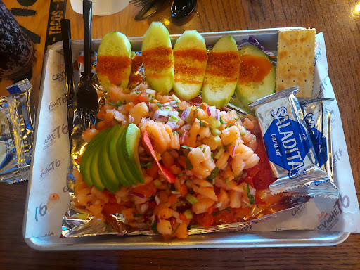 Read moreThe decor looked great, the music was nice. When we sat down after ordering. The food arrived about 5 minutes after ordering so they have really exceptional service. The food was pricey but seemed worth what you were getting. I ordered the tacos de camarrón zarrendeado which tasted really good and what I think everyone needs to try. And I never had a taco plate with rice, fries, and onion rings before. My wife got the tostitos ceviche de camarrón which tasted good with added lime. If there was only one complaint is that the salsas were not that spicy and my wife especially prefers her ceviche to be really sour/bitter or spicy to the point of inducing gastritis. I know that's weird but there are some other restaurants that have delivered on that. Although the ceviche does look presentable and even a little intimidating, the taste does not match the presentation. So if the menu looks like it will send you to the restroom, don't worry the taste is not as extreme...
