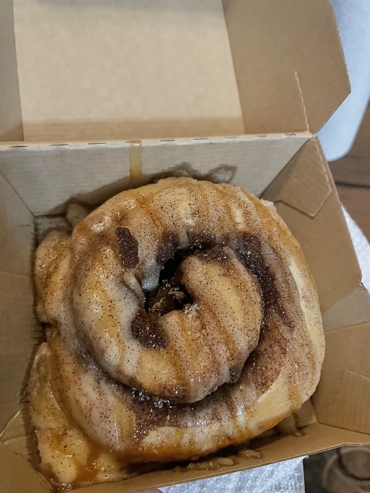 Read moreNeat place to come for a treat. đŞđĽ Giving it âď¸âď¸âď¸âď¸ stars for 2 reasons. 1 the staff was not very welcoming. As in we ordered & got our food without them saying a single word to me or my family. đś (And yes I understand espaĂąol so thatâs no excuse!) Itâs unsettling to pay a premium price & be treated in such an ODD manner. There were 2 girls that pretty much just stared at us the whole time. No hello. No thank you. Nothing. Awkward laser stares. 2. The cinnamon roll I got looked nothing like the display. See my pic. I got the churro one. If you browse the pics of other reviewers youâll see the display case versions. Notice the difference. I basically got a very basic, plain cinnamon roll. It was good, but it wasnât spectacular AND not exactly what I ordered. I ordered the one in the display case & paid a premium $$$. (Misleading) Had I known I likely would not have ordered that. đ¤ˇđťââď¸ My son got a pre packed brownie. He loved it. It was decent imo. Not very decadent or sweet. âď¸đ˛ They had games out on tables which is nice if you want to bring kids or a date & chill for a bit. Itâs worth a try but I doubt weâll go back for the reasons stated above. Customer service seems to be â ď¸ these days. Not sure if one of those girls was the owner if not - owner I would remind your staff the importance of making đ contact and simply GREETING the customer. Hello, what can I get you? At MINIMUM. 𤯠If the owner was one then thereâs no hope & you should do better or that place will go...