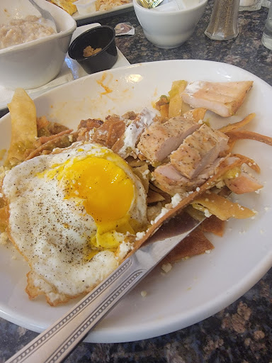 As for the food, it was a huge letdown. I ordered the Chilaquiles, and the chicken was dry, cold, and hardâhonestly, it tasted like a piece of frozen chicken that you reheat from the microwave for a bit too long. When I mentioned it to the staff, they offered to replace it with another breakfast item, but we had to wait 15 minutes just to be told they couldnât make breakfast anymore.