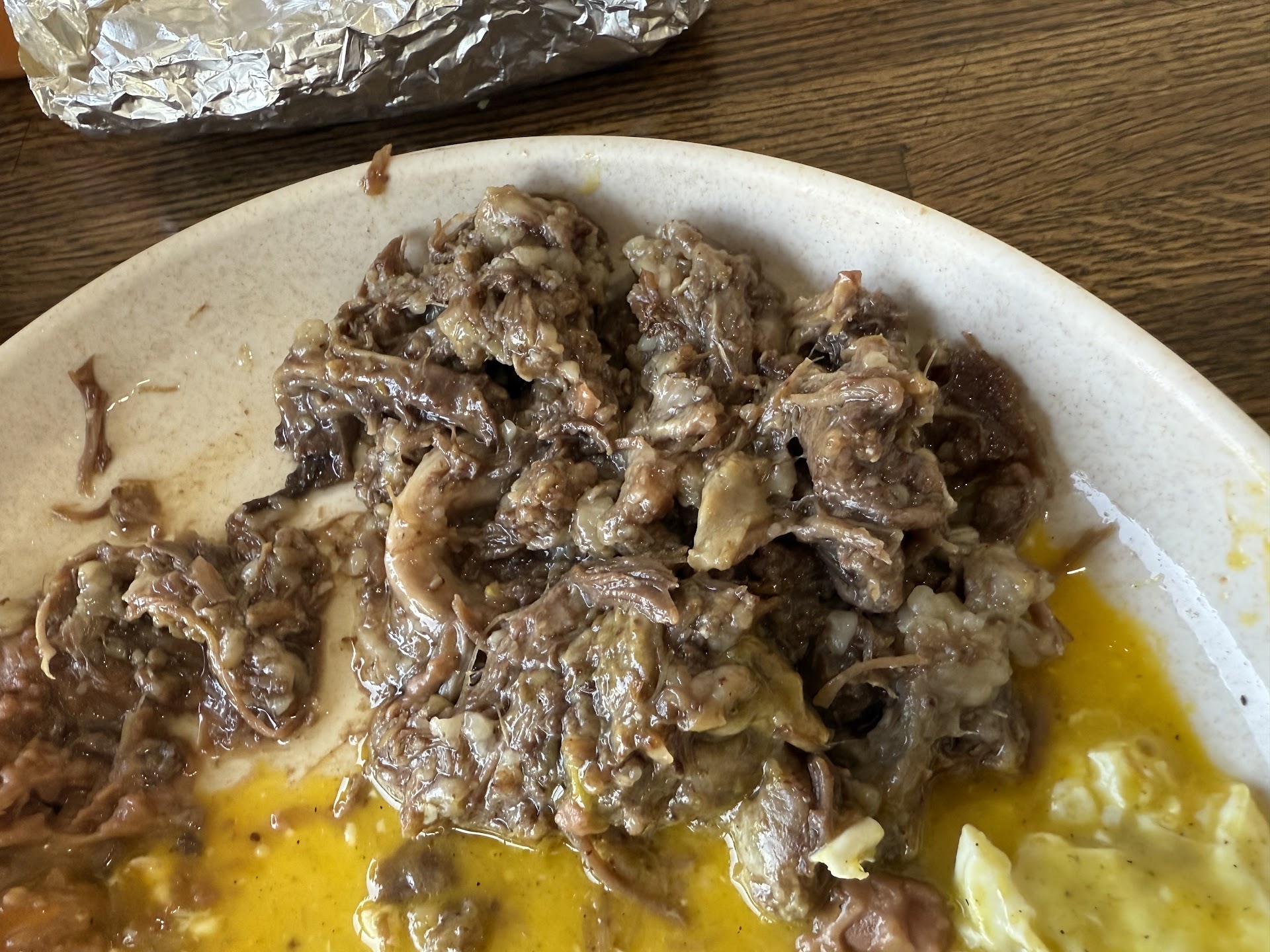 Food: I ordered a breakfast plate that came with pork asado (eggs, beans, potato). 1 bacon and egg, 1 chorizo egg.