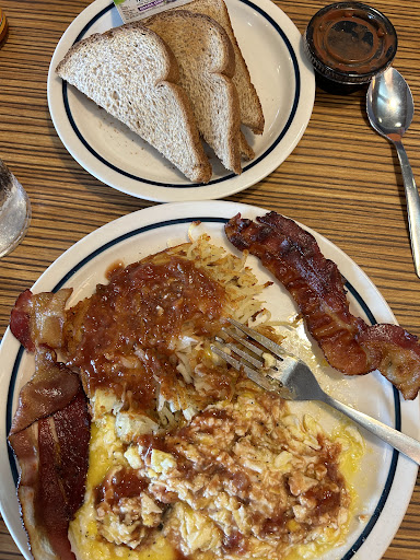 Pretty pissed. My husband and I went to IHOP with the intention to use our "Any Breakfast Combo" coupon with our IHOP rewards. The coupon would have let us redeem any combo for free. Or that's what we thought at least. Turns out that IHOP was false advertising. Not only could we not use the coupon on a limited-time combo (we were NOT told this, and it does not specify this in the app either) but we couldn't use it on our omelete either. Why have a coupon called "FREE BREAKFAST COMBO" when you cannot, in fact, get any free breakfast combo? Again, false advertising. On top of that, the manager refused to comp out one of our meals when being told about the situation. What made it infinitely worse was that the manager told us that if we were given a discount on our meal, the waitress would have had to pay for that discount out of her pocket. What the actual f