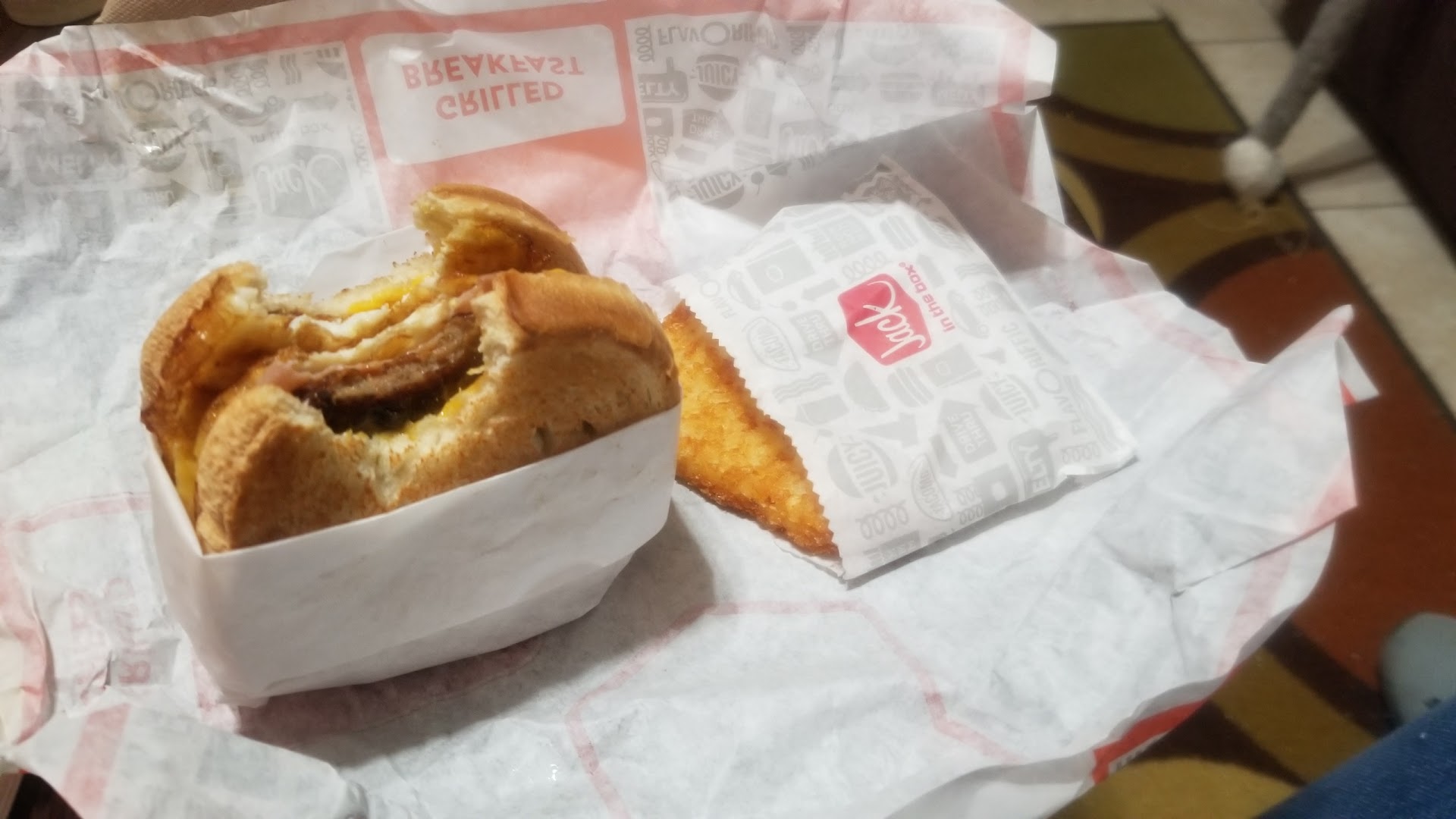 I was in a hurry to get to work and had no time to wait. I went across the street to get cash from an ATM machine and saw a Jack in the Box open.