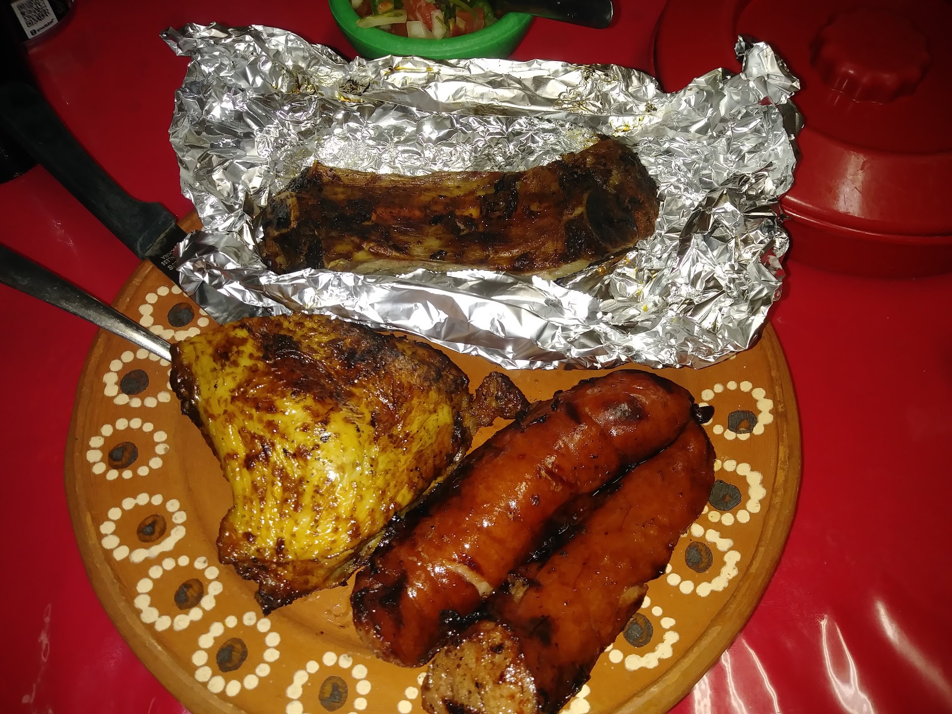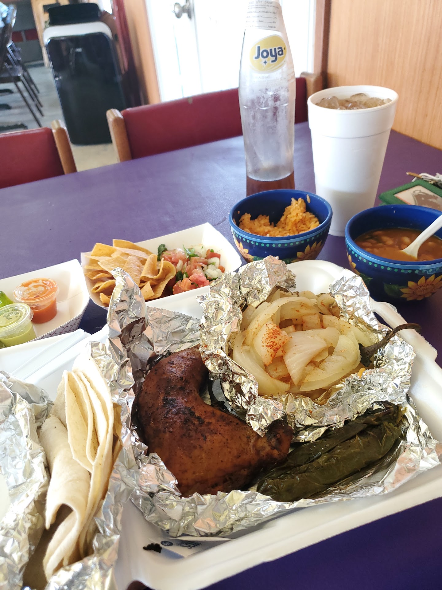 Read moreThis hole in the wall small restaurant has authentic, homemade, Mexican comfort food. The rice and beans taste like my grandma's cooking. My hubby and I ordered a plate to share with one beef rib, a piece of pollo asado (grilled/BBQ chicken), and 2 large pieces of sausage for about $8. It also came with 3-4 tortillas. We ordered a BIG baked potato with butter, cheddar cheese, and sour cream. We had a Coke in a glass bottle from MX, and a bottled water. The server kept our bowl of homemade tortilla chips full, and the pico de gallo and 2 different kinds of salsa were great tasting. We paid about $20 (w/tip). It was enough food to fill us both up, and we took some food home. They also sell purses, caps, and earrings from Mexico. All in all, I'd say we had a great meal. It's nothing fancy, but the food was well worth the 20+...