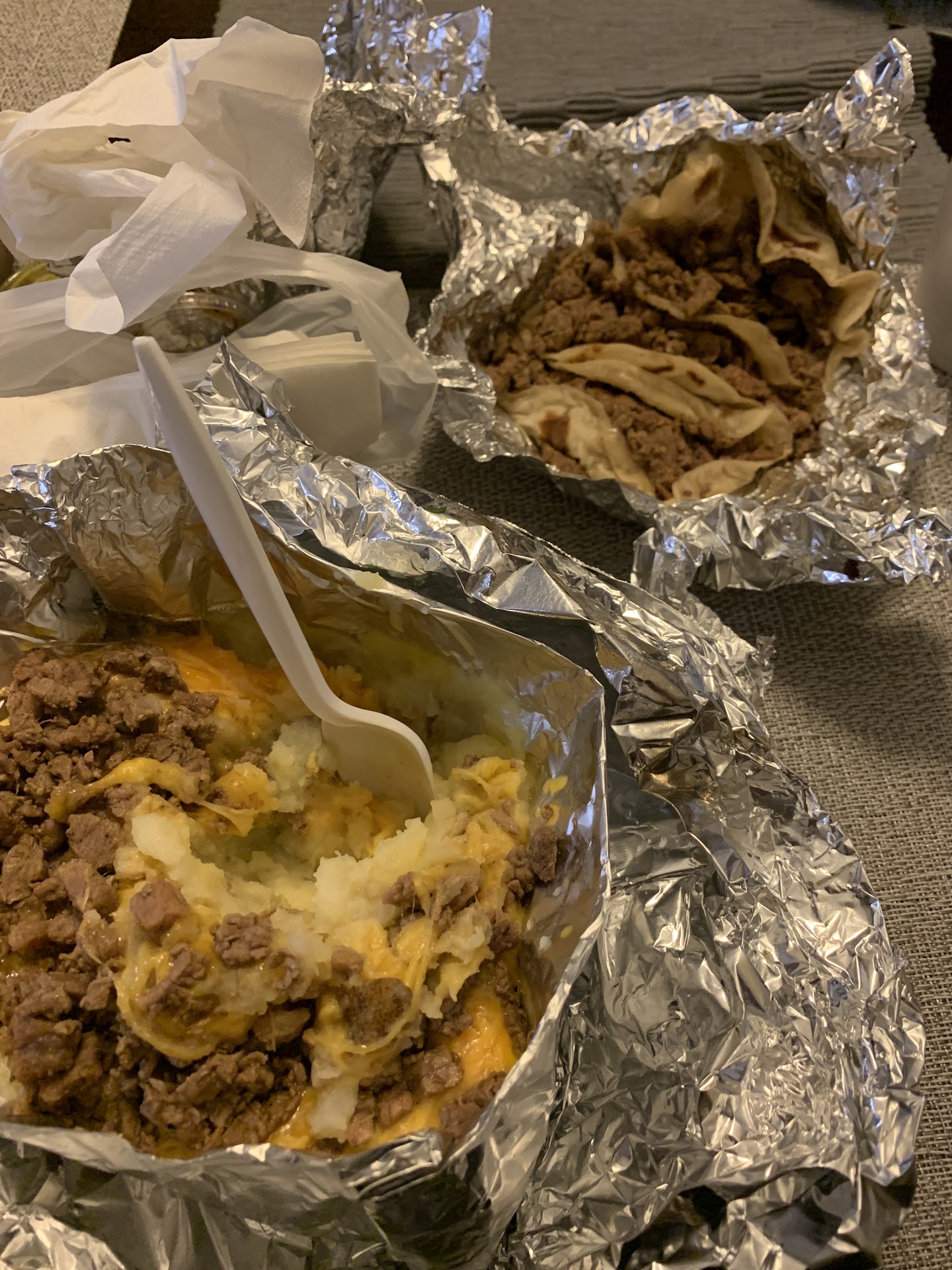 Read moreToday, 4/23/2022 @8:35pm, I ordered 3 orders of the toreados tacos and a large potato to-go. I must say the carne is good, nothing exceptional, just good. However, the tortilla disintegrates with the meat's moisture and tears in your fingers as you get it to bite the taco. I have ordered from them 3 times before and all the times I specifically ask them for raw chopped onion with cilantro and they say they will include, they never do, just the cilantro and grilled onion. This gives the impression that they have them pre-cooked onions and wrapped in foil and do not fresh cut your requested onion or other veggies. The beans are average tasting, nothing impressive. The cilantro is not fresh, its old and yellowish most of the time. I hope the owner sees this review and opts to up the quality of service in the drive thru. They really need to pay attention to detail and place the customers needs first if they want to grow, otherwise this business will lose...