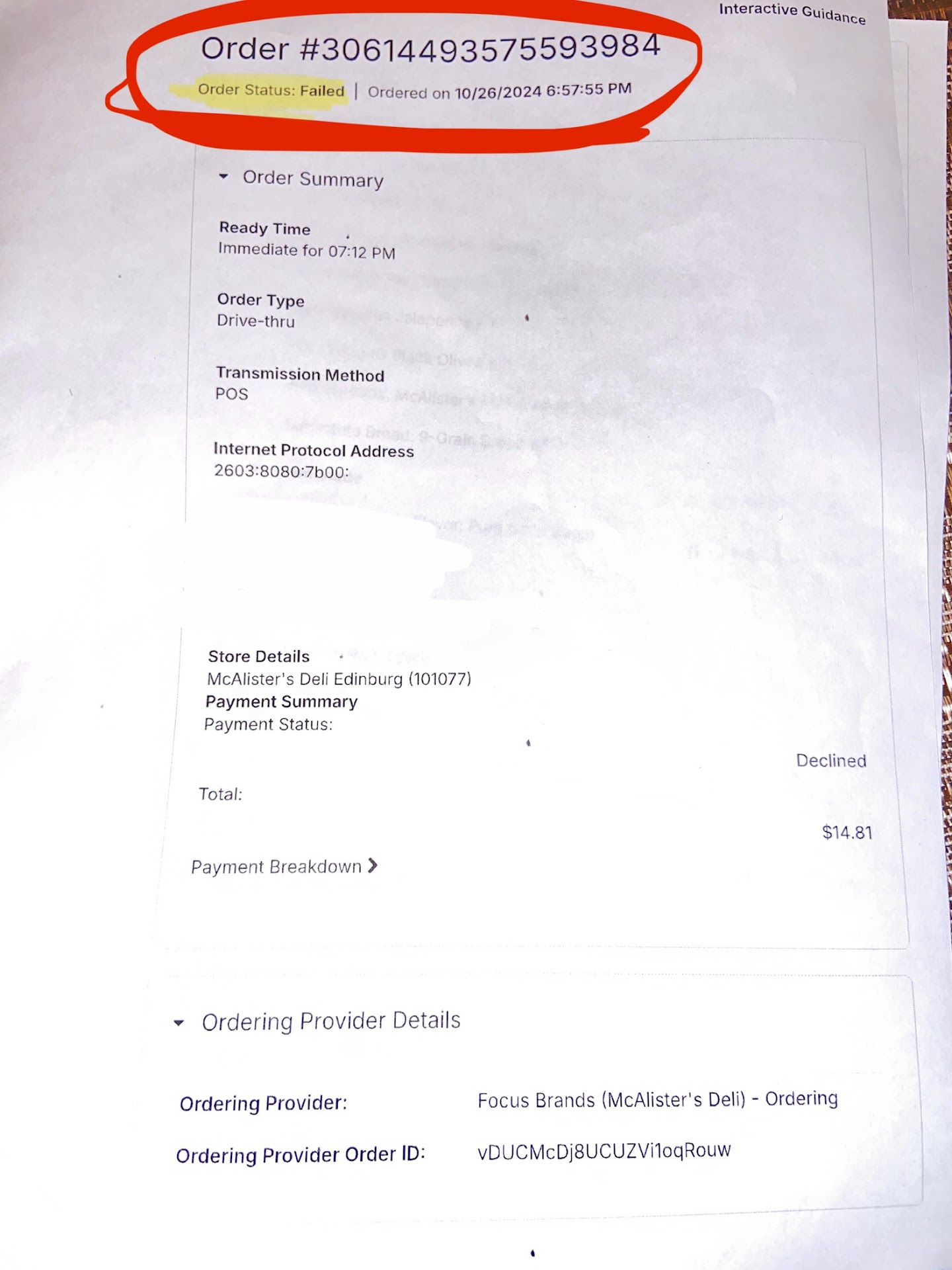 Raul the supposed manager is a liar. Placed an online order, picked up at drive through and my order was wrong, didn’t even have the correct bread. I came back through the drive through window requesting a refund and handed back the food. The girl came back telling I’d get my refund but didn’t hand me no copy or confirmation of a refund so I asked for one. She goes back to the supposed manager Raul & minutes later she comes back with printed pages of a declined order I placed minutes earlier with the wrong card and a pathetic cookie. Order # on the pages printed by Raul did not even have the correct order # matching my confirmation email. Raul highlighted ‘declined’ trying to pass it as a refund. VERY UNPROFESSIONAL! I come back & this time I go inside. He hands me now a blank receipt, which no where says refund AGAIN! Luckily I recorded the interaction to file a chargeback with my bank. & Raul says he was going to tell me but I ‘drove off’ (I saw him walk to the back, never did he come talk to me) that he was going to tell me he’d give me a credit and wrote my name & # down in a ‘credit book.’ Are y’all really messing up that much, y’all have a credit book? And why a credit when they could have offered to fix it & just remake a simple sandwich correctly right then and there. It’s not rocket science. Raul lied several times & I will be reporting him to higher ups. Hard time believes he’s a manager as unprofessional as he is LYING to customers as if we can’t read what he printed off. Decline does not equal refund & I will most definitely not be using that credit. I was not looking for free food, just a sandwich...