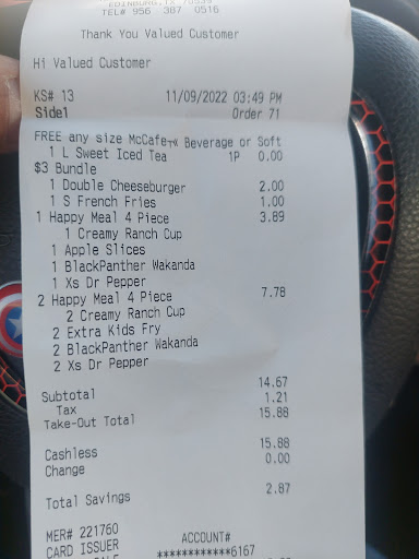 Read moreI went through the drive thru and asked if they had the spicy MC Nuggets as they are promoting them right now, they said no yet it's on their menu. I pull up to pay and not able to ask the cashier because he is busy taking orders which is fine. On the second window I ask the cashier if there is a time frame to order them so I can come back within the time frame and she proceeds to ask and they say no. She said we sell them till we run out, which then I ask if they're out and she replies no. I then tell them I had just asked for them if they can switch them out, cashier asked manager and she says no. Mind you I just wanted to switch it out, didn't expect anything free. I told her I had previously asked for them and she they said No. No apology or anything. I also had asked for coke with no ice, which they gave me loaded with ice. And I'm not one to complain, just was upsetting they should really take the time to previously make sure the item asked is really not being sold. And manager should also at least try to apologize for the inconvenience of...