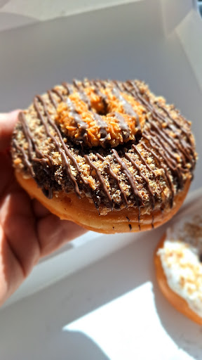 Upon entering, we were immediately greeted by a friendly rep. After learning it was our first time, she kindly talked us through options and introduced us to their flavors. Despite arriving late Saturday afternoon when they were "low" on inventory, there still seemed to be an endless array of choices from a few donut staples to a slew of tasty flavor creations.