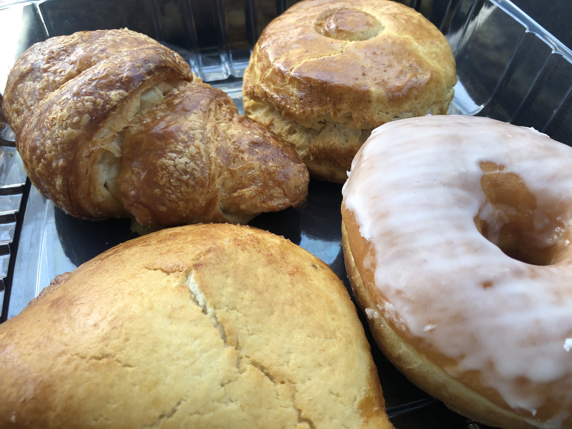 I take pride in being a biscuit aficionada as someone who always tries a bakeryâs biscuit offering. When I saw the biscuit behind the glass, it was unassuming in appearance with a slight shiny glaze and a crisp to the exterior. Biscuits are usually best when theyâre closer to the time theyâve been out of the oven, so I didnât have high expectations. Then I bit into it and found a delightful upset. The bread had a thin and flaky crust enveloping the soft, buttery center.