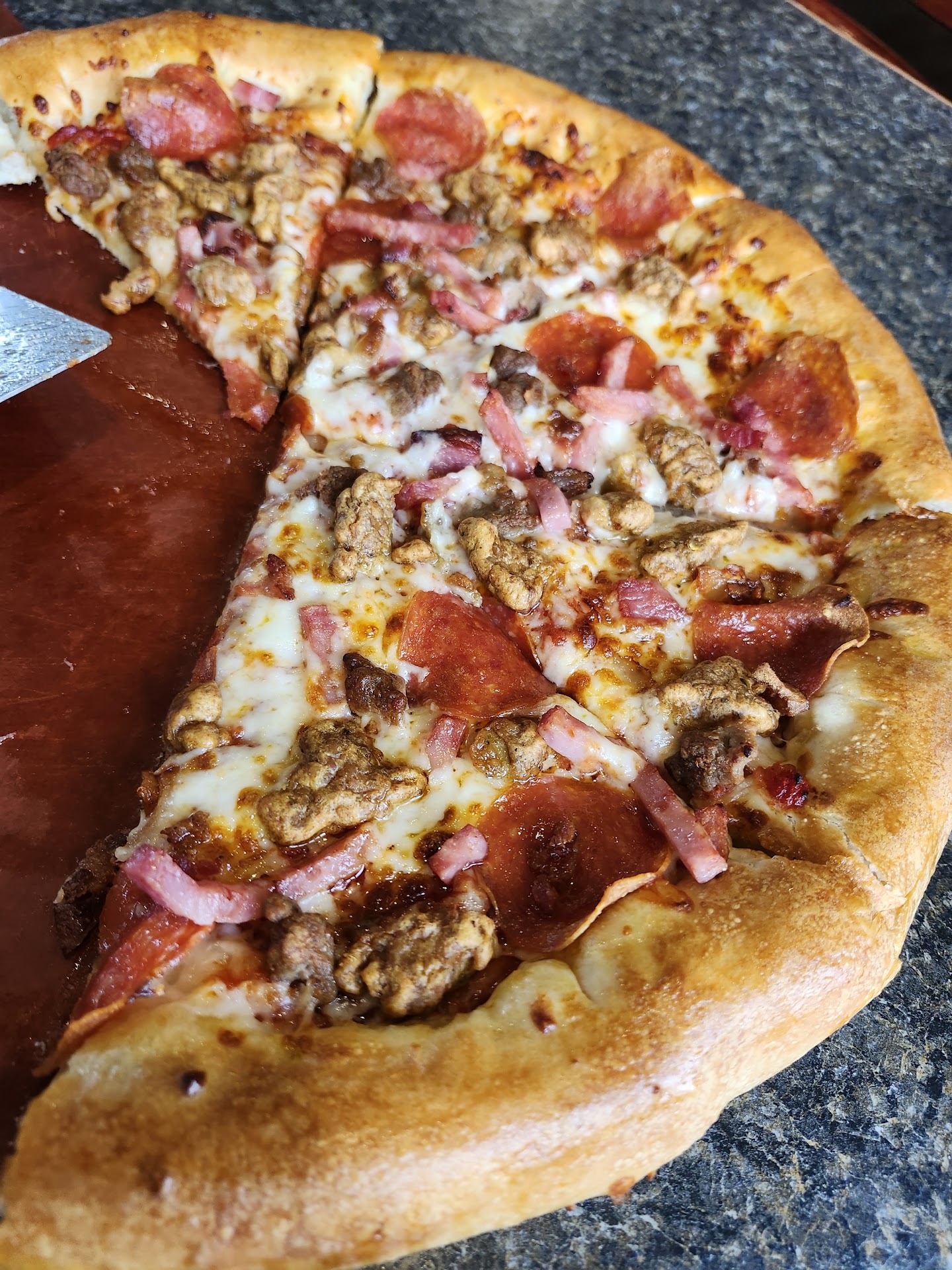 Soon after, he comes running out of the kitchen, asked me if it was a pepperoni or cheese pizza. I replied cheese, and he said an expletive, and ran back to the kitchen. Less than a minute later, he brings my son a pizza which he had obviously picked the pepperoni off with his hands, rather than make a new one. (See photo). We got up and left, won’t be going back.