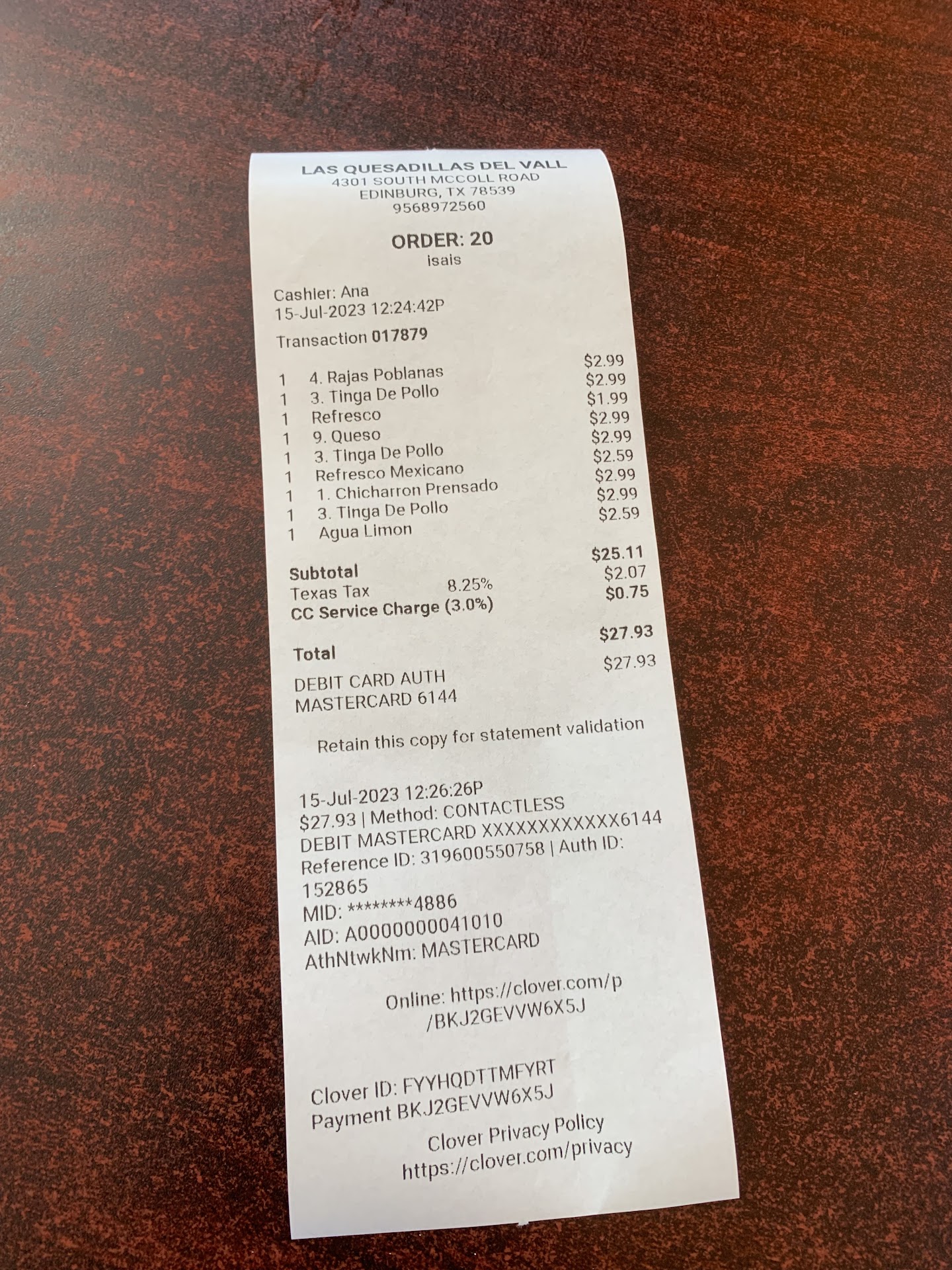 Read moreI gave this place another chance 2 jan 2018. NOOOOOT same bad bad service, lays are rude and not customer friendly. DON'T BOTHER !!! Simple, quick but tasty. They have quesadillas and sopes with various meat and non-meat items. Be prepared to wait for a bit if they have lots of people or lots of orders to go, they make the quesadillas fresh as you order. Worth the wait, trust me. I had given this place a 5☆ and yes the food deserves it. But it seems that now they have a $4 minimum to use a credit or debit card (and they do have a sign) so imagine my disappointment when the lady would not take my card when i got up to RE-ORDER MORE. "No puedo pasarla" is what she said. I didn't have...