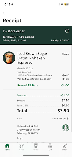 Este Starbucks es una ubicacion muy popular si tienen prisa esta ubicacion no es para ustedes. Popular Starbucks location, close to the University and surrounding schools. If you are in a rush this is not the store for you unless you do order ahead with 20 minutes in advance during rush hours. The store gets hits pretty heavily morning, noon and afterschool. During regular semester (university) the location is usually packed with students completing homework, studying or hanging out. Personal experience I have placed order ahead with 15 minutes, and still had to wait for my order. This is the only Starbucks in this area and honestly the staff is wonderful and patient with irate customers, who demand their order a minute after the order was placed. If you are a local you know this store is always busy and unless you want to drive to Mcallen or Trenton location, please be kind to the staff they are trying their best. Starbucks company really needs to re-evaluate this location as there is not enough staff to handle the morning and afternoon rush. Supplies are almost always running low due to the huge demand of the products. In my opinion the staff is placed under a tremendous pressure...