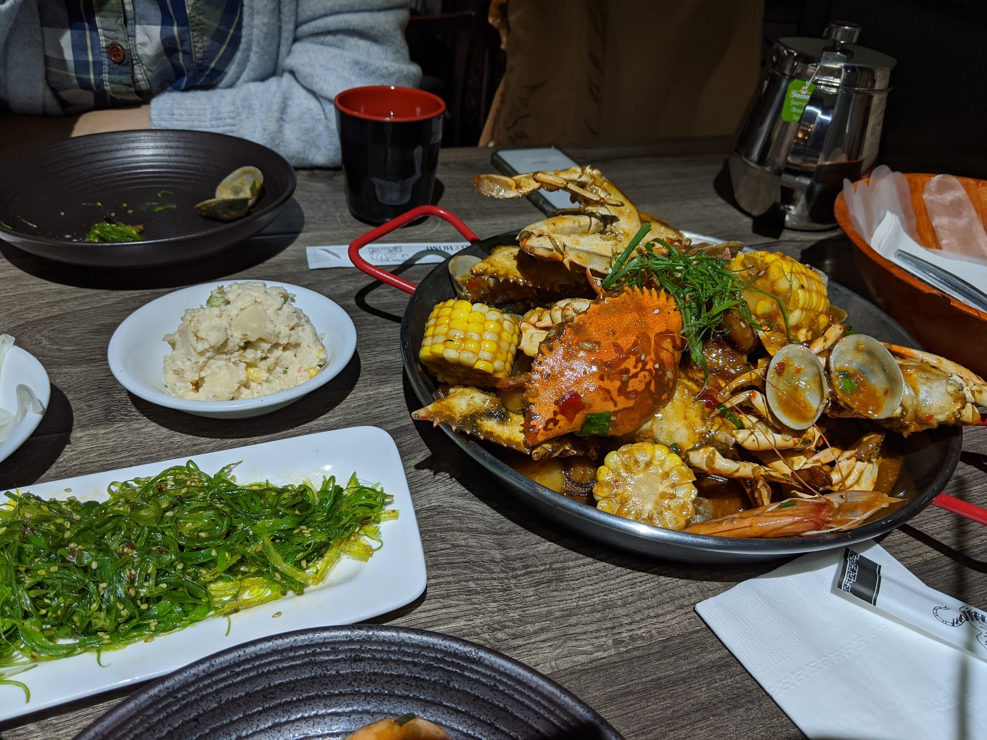 At first glance, from the outside appearances, the restaurant seemed unassuming. We arrived at about 11:30 am for brunch and we were greeted by a friendly server who escorted us to our table. The atmosphere was a bit confusing. While their furniture shows they are trying to give the place a nice asian flare, the inside painted walls and flooring seems like they rushed to open. Yet they do have some nice bric a bracs hanging on their most inner furthest wall. I see the vision they are trying to establish but I feel as though it isn't finished. They actually opened in August of 2019. Considering, as of this writing, only two months ago, I would like to see in another year if they indeed finish up with their decor or if they want to see if their restaurant will succeed. Perhaps then, they will finish completing the necessary renovations. Or perhaps they will take their profits and expand on their already diverse menu. Their restaurant name states they are to be known for their seafood and ramen. They do offer dishes beyond their restaurant's name.