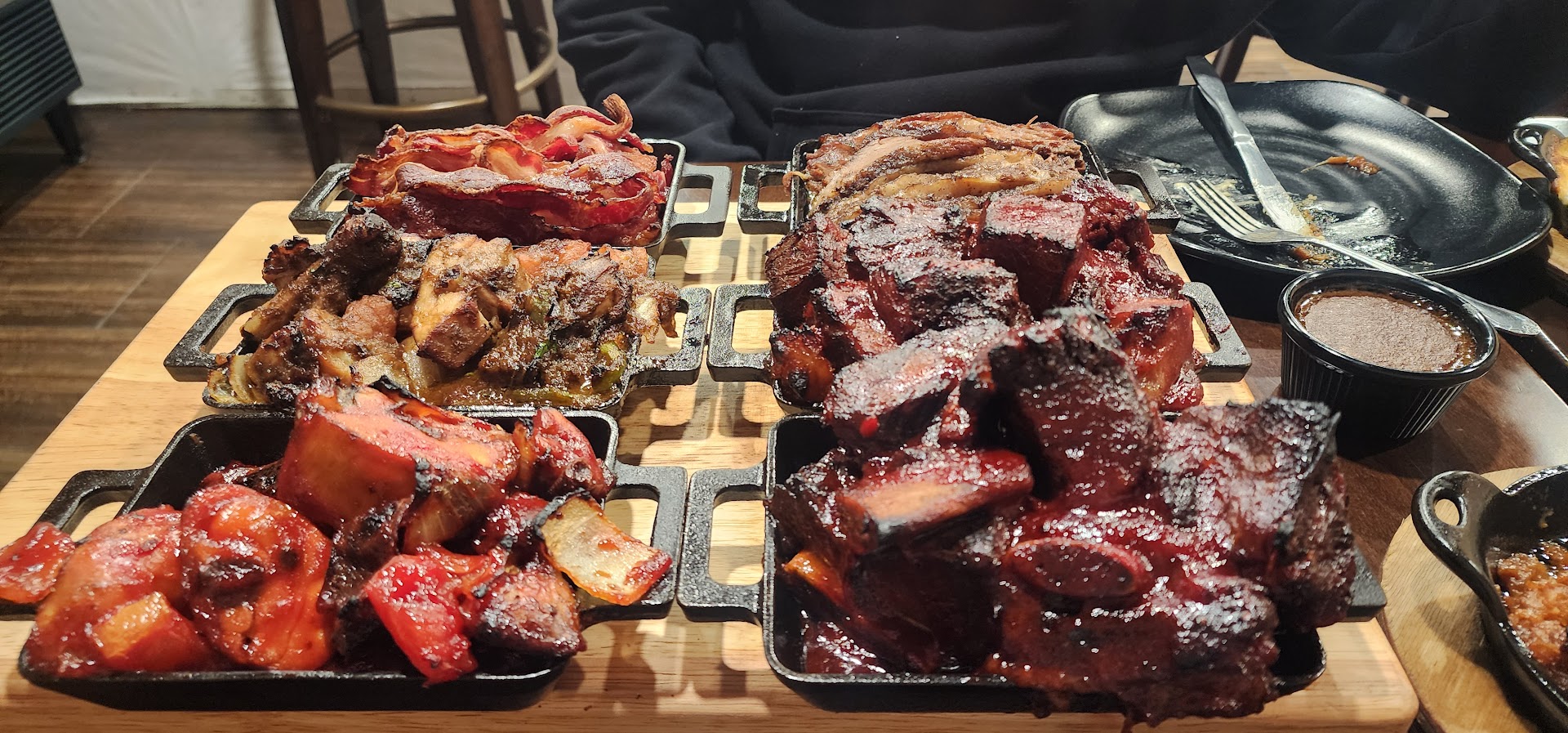 The bad: Everything else. It really was some of the worst tasting bbq I have ever had. I'm a brisket person and the brisket, though tender, lacked any seasoning. It was bland and sad. The jerk chicken was awful. That is not even remotely close to how jerk chicken should taste and simply lacked flavor. The food also took a really long time. The sides of mac and cheese and candied yams came out 30 minutes before the meat platter, which made no sense.