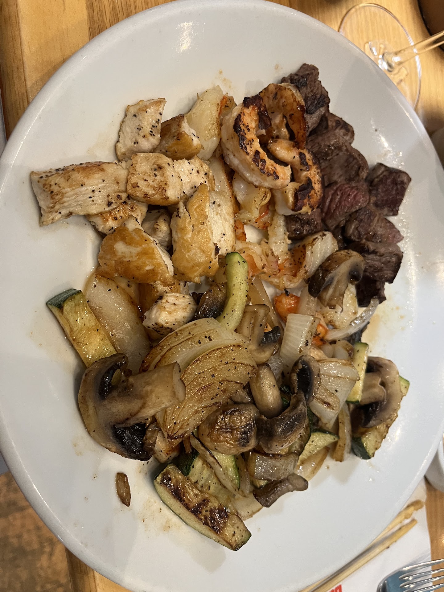 Read moreMy husband and I went to Benihana today because I received a $30. Coupon for my birthday in August. First- our server was very nice but I don’t think he understood what we had requested. We wanted one glass of water, one seltzer and One specialty drink a Guava Goddess. The drink was $15.70 for one glass of Ketel One Vodka, Orange Grand Marnier, and Guava Puree! I did not bother to correct the bartender because I’ll just write a review! The server did not bring the glass of seltzer nor the glass of water. And HE decided to bring two of the specialty cocktails at $15.70 each! We only ordered one glass. We did not correct him because, like I said, I’ll write a review to let customers know about my experience! And our drinks had the vodka, guava puree But it had NO Orange Grand Marnier at all! We did not complain but we Will write a review to let customers know - to be sure to check what you’re paying for! At this Benihana- Menlo Park NJ- you do not always get what you’re supposed to get! My husband ordered the Boat Salmon- it was good. We requested No added salt and very little soy. It was done correctly, thank you! I ordered the ( no garlic) Benihana Trio for $49.60. They cooked it as I requested. Thank you! I was Supposed to get filet mignon pieces, chicken pieces and the menu said Colossal Shrimp! I think I got maybe one or two colossal shrimp that were cut up into two pieces BUT they threw in two regular small shrimp! The server was nice but not that attentive because he was busy behind the bar. We requested to sit at the bar area! The lady that removed the dishes and glasses off our table was excellent! She was very nice and polite and attentive! Thank you! We went in there to see how the restaurant was with an open mind. My husband and I spent $79.08 after the $30. Off coupon then we gave 20% tip $21.00. Our total for lunch was $100.08 for two cocktails, two entrees. We are not complaining but Advising customers, that you do not always get what you’re paying for! We will not be going to Benihanas anytime...