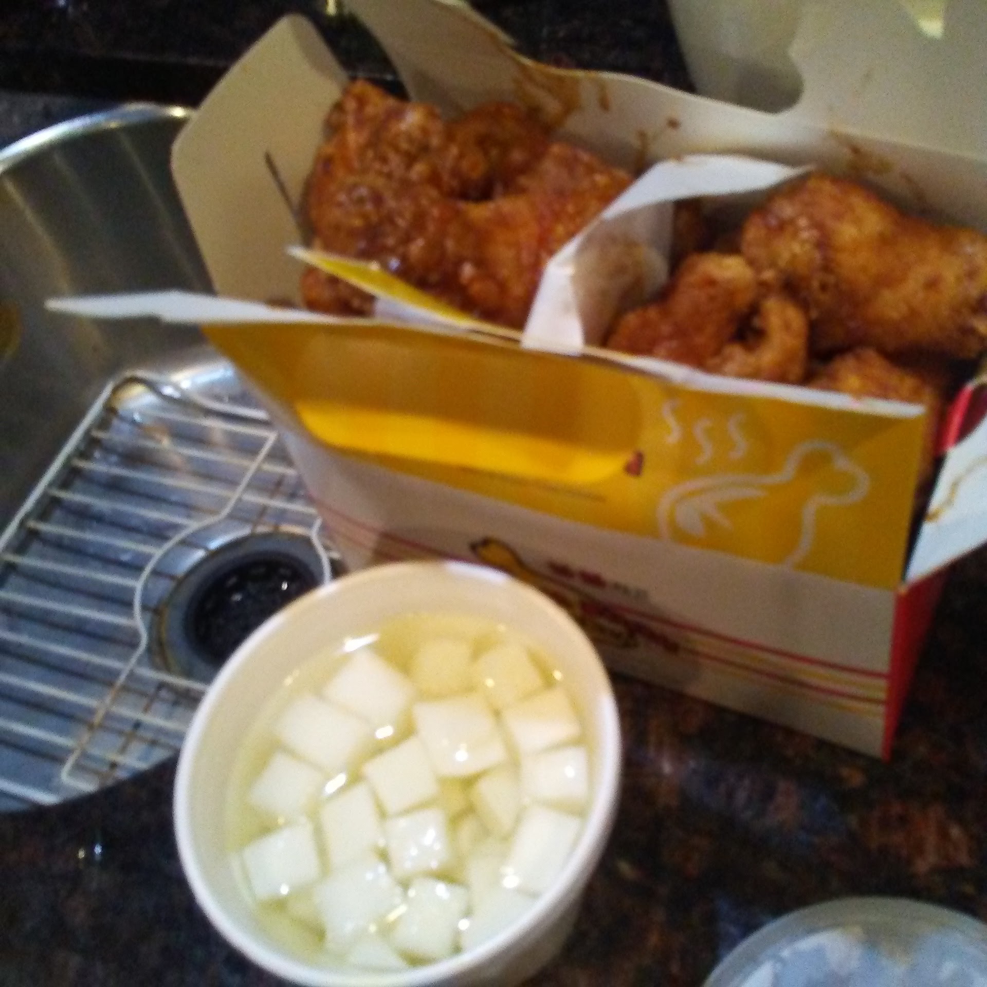 Read moreI placed an order for a small Mixed Wings and Drumstick. They give you an option for a side of sweet and sour radish or white rice. I opted for the half and half wings which was half spicy and have mild with a side of white rice through Uber Eats. It arrived really quickly. The packaging looked intact, upon opening the box, the first thing I realized were the drumsticks were very huge! 3x the size of any Korean style wings I have had any place else or any wings I have had which made it impossible to get it crispy because of how big they were. After taking my first bite I also realize it wasn’t as flavorful and not spicy at all. The mild wings were very plain with no flavor and the spicy didn’t even taste mild. The rice was very sticky and had no flavor either and both the wings and rice were very cold for an order that arrived pretty fast. Total failed. The lady I spoke with over the phone was very nice though. I personally won’t...