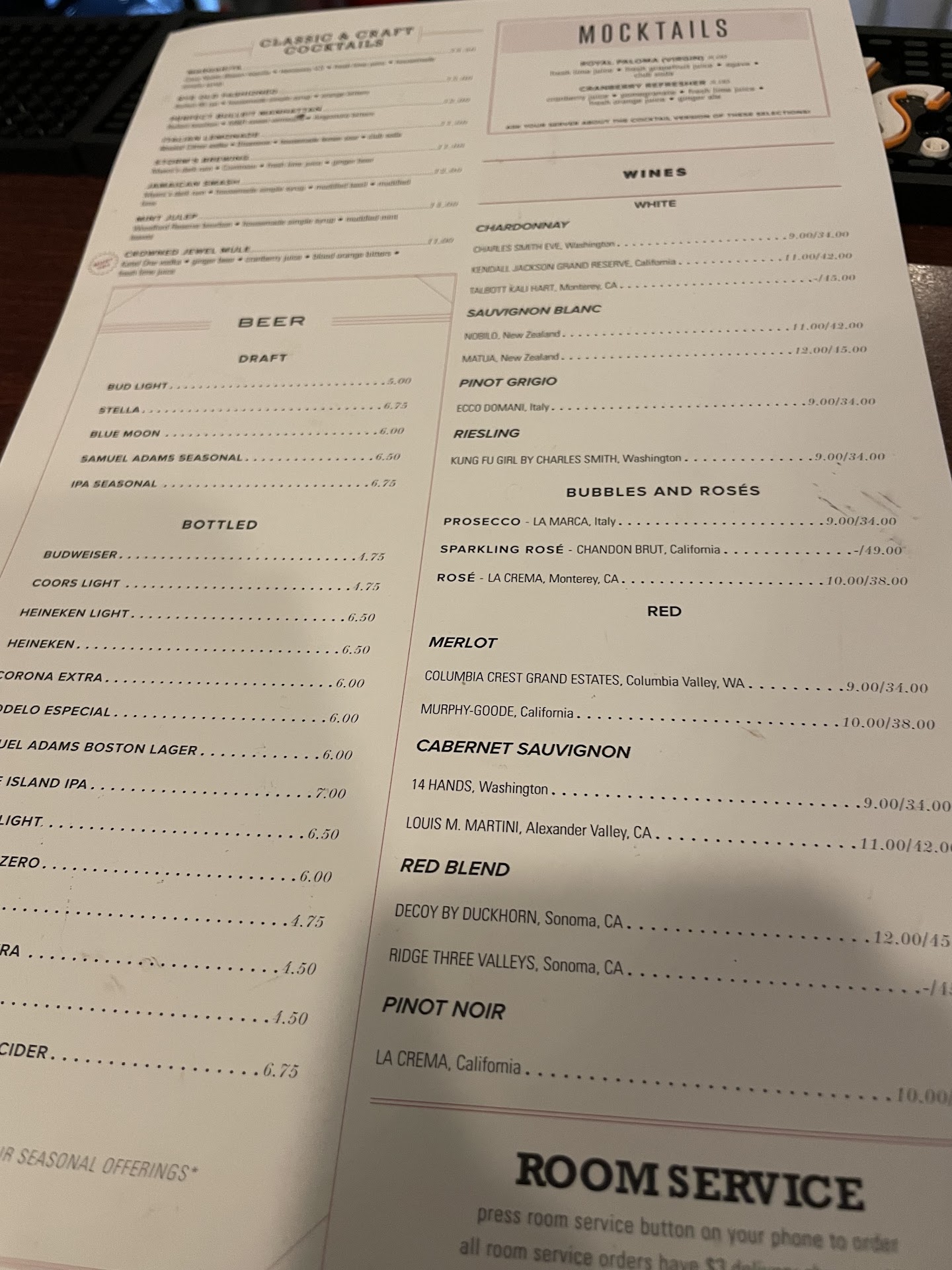 Order two strip steaks one medium rare and one rare (blue) topped with blue cheese. Neither came with the blue cheese. Medium rare I was told was okay rare came out well done, they cooked another steak that came out rare...ish with no blue cheese. The state was not fresh it was a Frozen steak like you can buy to cook at home from one of those traveling meat trucks that set up in the parking lot of shopping centers. A dirty gin martini came out as a dry vodka martini and after the third try to get a dirty gin martini we got a glass of red wine. Appetizer plates and silverware were forgotten. We tried it don't think we'd...