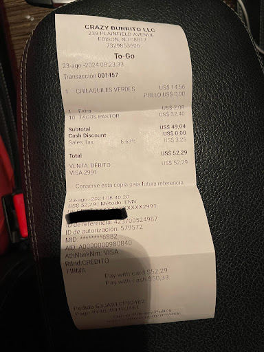 Read morethis place was ok , if i were you id buy for take out or delivery instead of eating in .. we went to eat there and no one greeted us we just sat ourselves and waited a few minutes for the waitress , when she then came she has absolutely noo people friendly attitude she is just blank and get to chase like "what you want for drinks?" "ready to order" (in spanish of course) and no hello how are you i understand if it was very busy but we were the only ones eating in .. the thing that got to me the most was after we were done eating she never came back like to give is the check or anything so i went up to the register myself and asked her how much it was so she pulled the check out and put it to the side (i saw it said $46) but she said "its $52" ?? she basically tried to tip herself !! see im not mean to waitresses i know they work hard and deserve a tip and ive even given $10 tips before but this lady was not very helpful and ontop of that tipping herself ???? i gave her a $50 and left .. food was great and id definately eat here again maybe for delivery but as for their service it...
