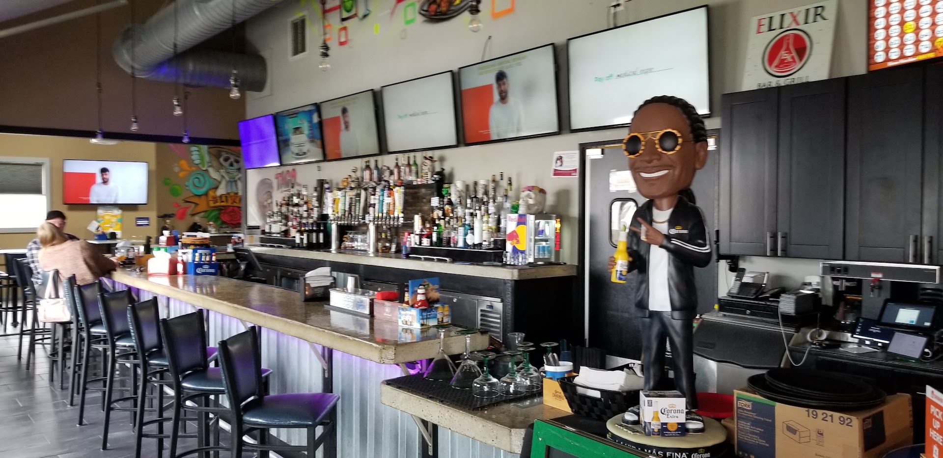 Read moreGreat environment and with friendly staff. I sat at the bar and received fast service. As a starter I had the chipotle corn on the cob which was amazing ! Although I like Mexican food, Iâm not too fond of spiciness. Their corn on the cob, to me, was the right amount of spicy making it delicious and enjoyable! I went for happy hour and I got the Mango Elixierita for $6 (yum!) and I got the âdos tacosâ -chicken and ground beef for $5. Honestly, the tacos to me werenât any better than something youâd make at home for taco night. Itâs the same tortillas and shredded Mexican cheese you buy at the supermarket. I feel like they could definitely do a better job with the tacos.