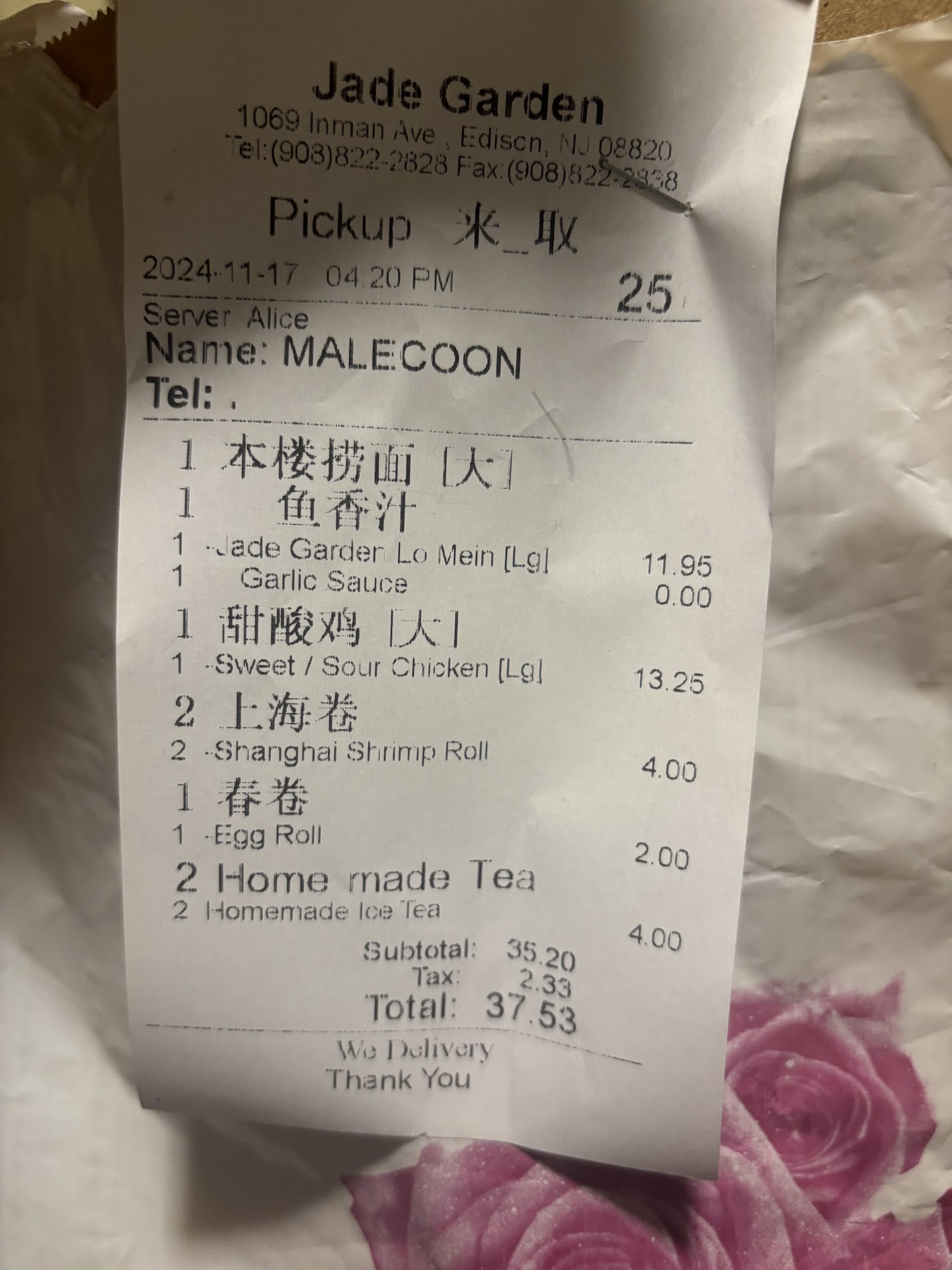 Read moreIt hurts me to see once one of the best Chinese Restaurants in NJ, End up as one of the worst ,Been going there since 2004 when I worked in the area was me & my co workers favorite Lunch spots as well as me & my wife date nite sometimes spot the Food was out of this world ,My last visit I was given bad ,sour Chix & broccoli 🥦 I noticed it when I opened the container something was off ,After a 2 bites I realized the Chicken was bad Pure garbage stay away from this place also I got Brown rice instead of Fried rice ,This place is disgusting 🫣 Horrible food...