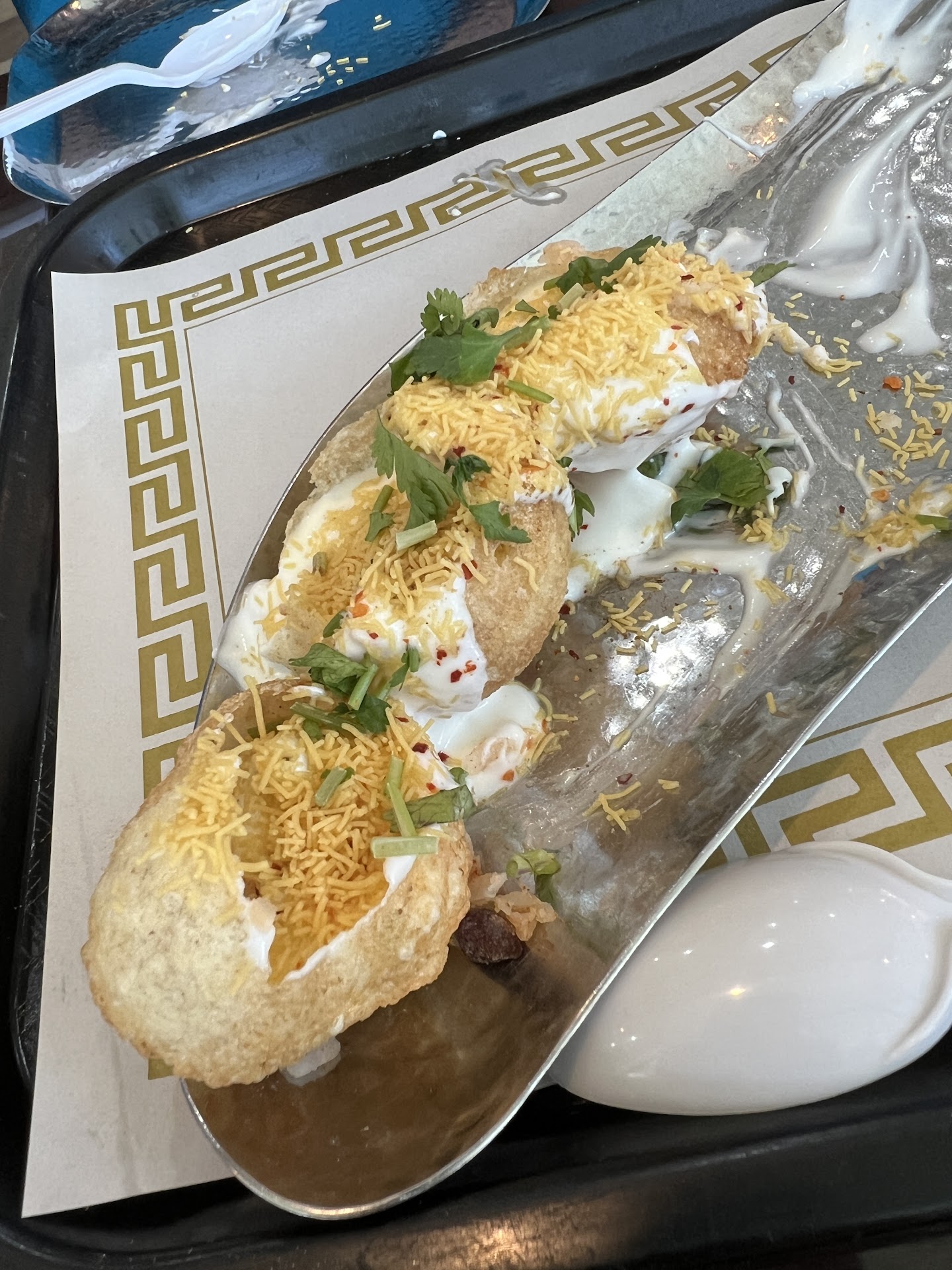 The food was quite good, but if held to the high bar of an Indian restaurant back in India, i felt like it could have offered more. The chaat was average and the Chole in the Chole Bhature could have been more flavorful. Nonetheless, the Veg Seekh Kebab were quite tasty even if they didn't look or feel like a traditional Veg Seekh Kebabs, and the Aloo Paratha was also quite tasty. We ordered a Cappuccino to go and it was great (felt like a hybrid between a filter coffee and a Cappuccino).