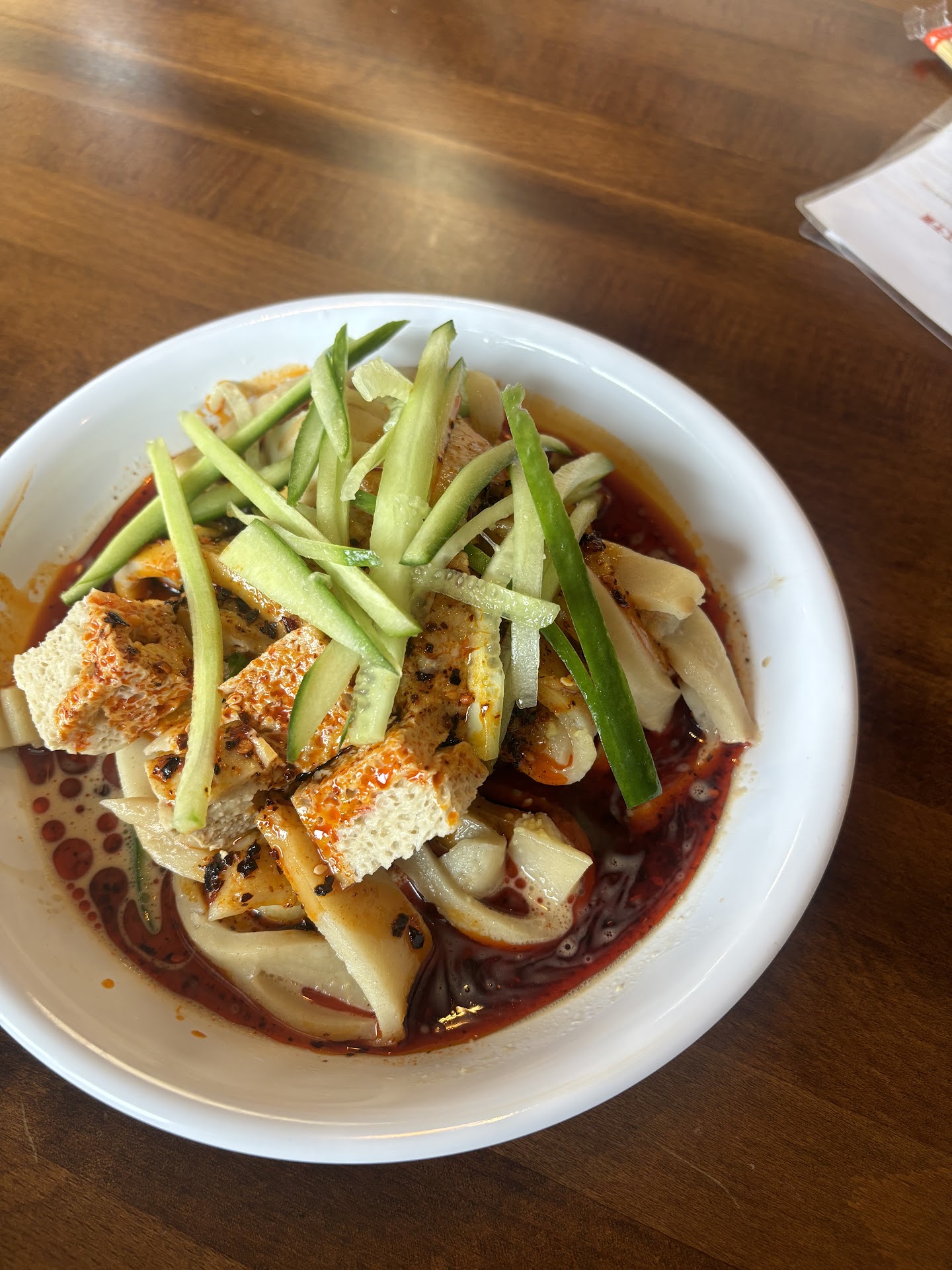 The food was absolutely delicious, we got the scallion oil noodles and the spicy cold noodles, both of which came out with incredibly generous portions for the price that they are. We also got the popcorn chicken which was my personal favorite, and the cucumber salad which was also really good.
