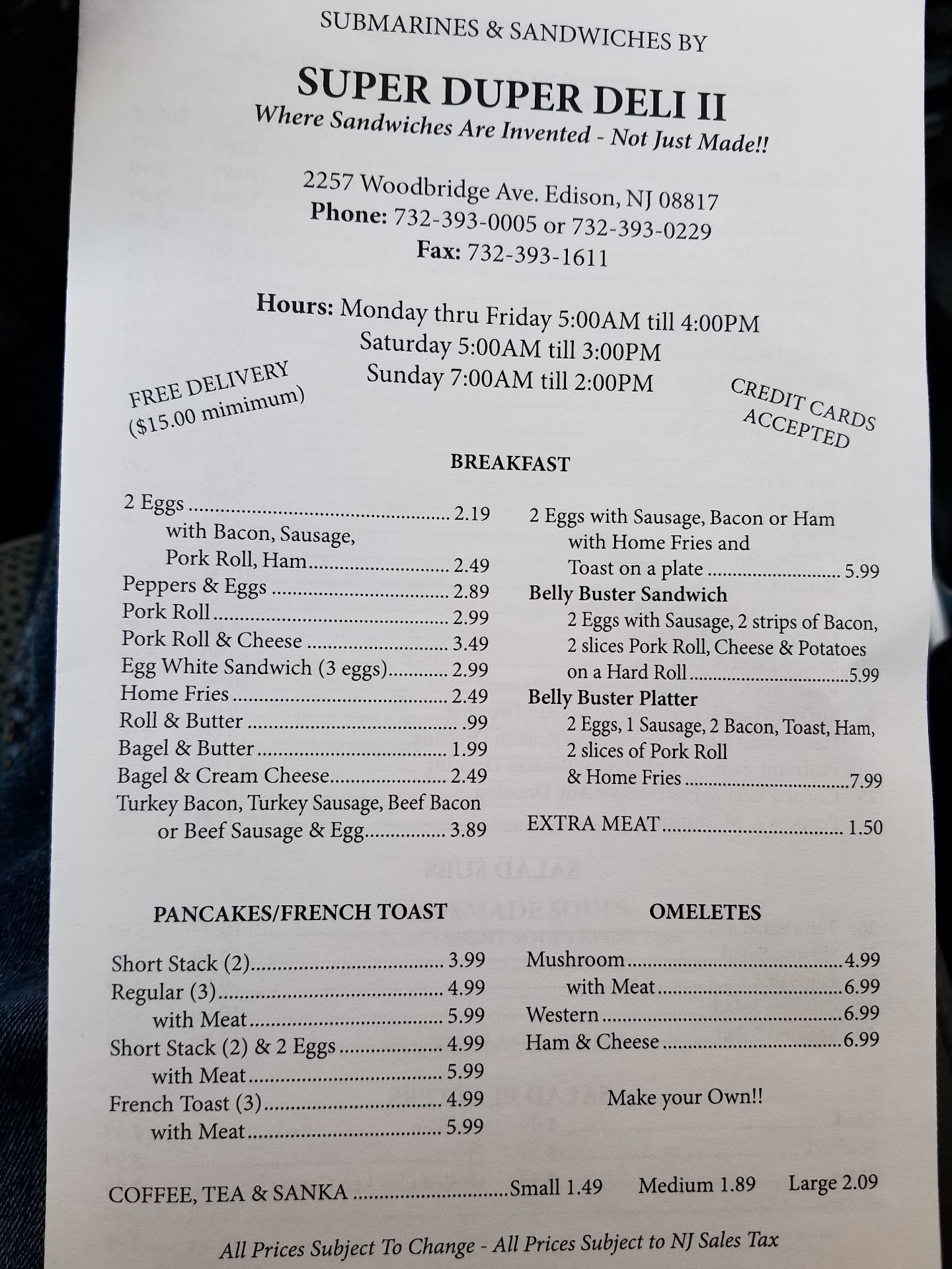 I have tried many different dishes at the Super Duper Duper Deli. From egg, cheese peppers, onions quesadea. I've had the egg cheese pepper onions on a quesadea. Additionally I've had silver dollar pancakes with scrambled eggs, French toast, Corned beef sandwich on rye and many other dishes. All of their food is made nice and fresh and excellent. Everything you eat is made fresh daily on the premises. People are Great, Friendly and a pleasure to interface with. We've made a lot of good friends at the Super Duper Duper Deli. . Also their soups are home made. Some of their home made are: broccoli with cheddar, lentil, cream of broccoli, cream of turkey, lobster, cream of spinach. Prices are great and you won't be sorry for stopping by. We have for the most part dined in. We have called a few times to pick up and always had success on having our food ready for pickup and never had a problem. Their food is...