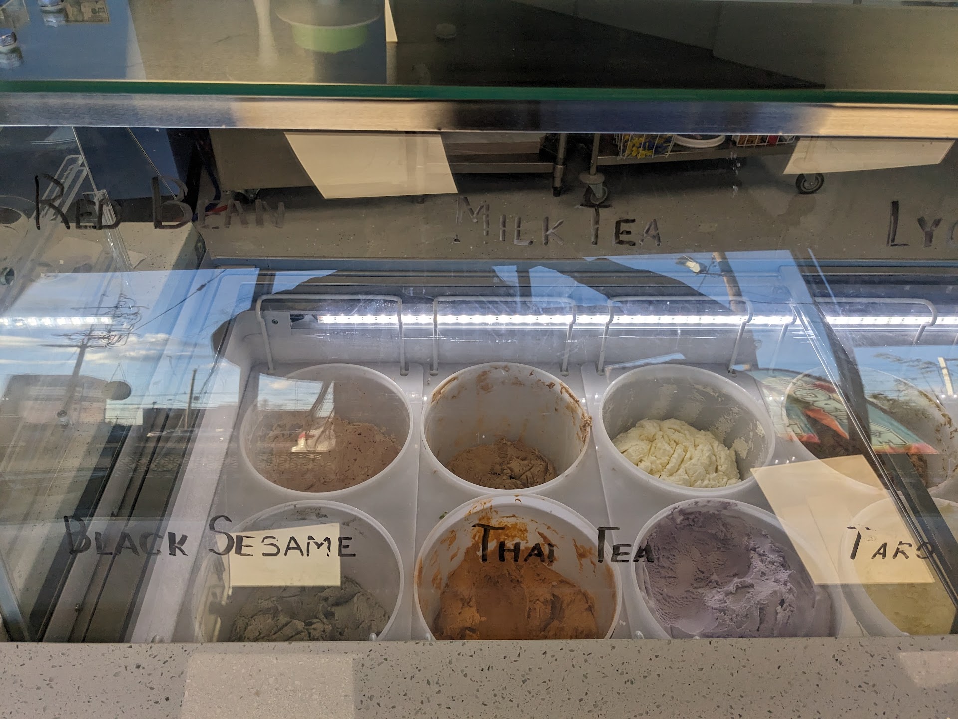 I had to take off a star for service, as despite the owner being very lovely to talk to, she would not allow us to sample flavors we wished to try. We had no way of knowing how we would like flavors like milk tea, lychee, mung bean and the like. We spent 15 dollars on three scoops of ice cream, and I didn't feel good about being denied the opportunity to see what suited my tastes. She said it was because she was out of tasting spoons. Ok, so order some more from Amazon or buy popsicle sticks or something. I think it may have been like an "out of service" sign posted on a restroom, just to prevent customers from using it. Not cool.