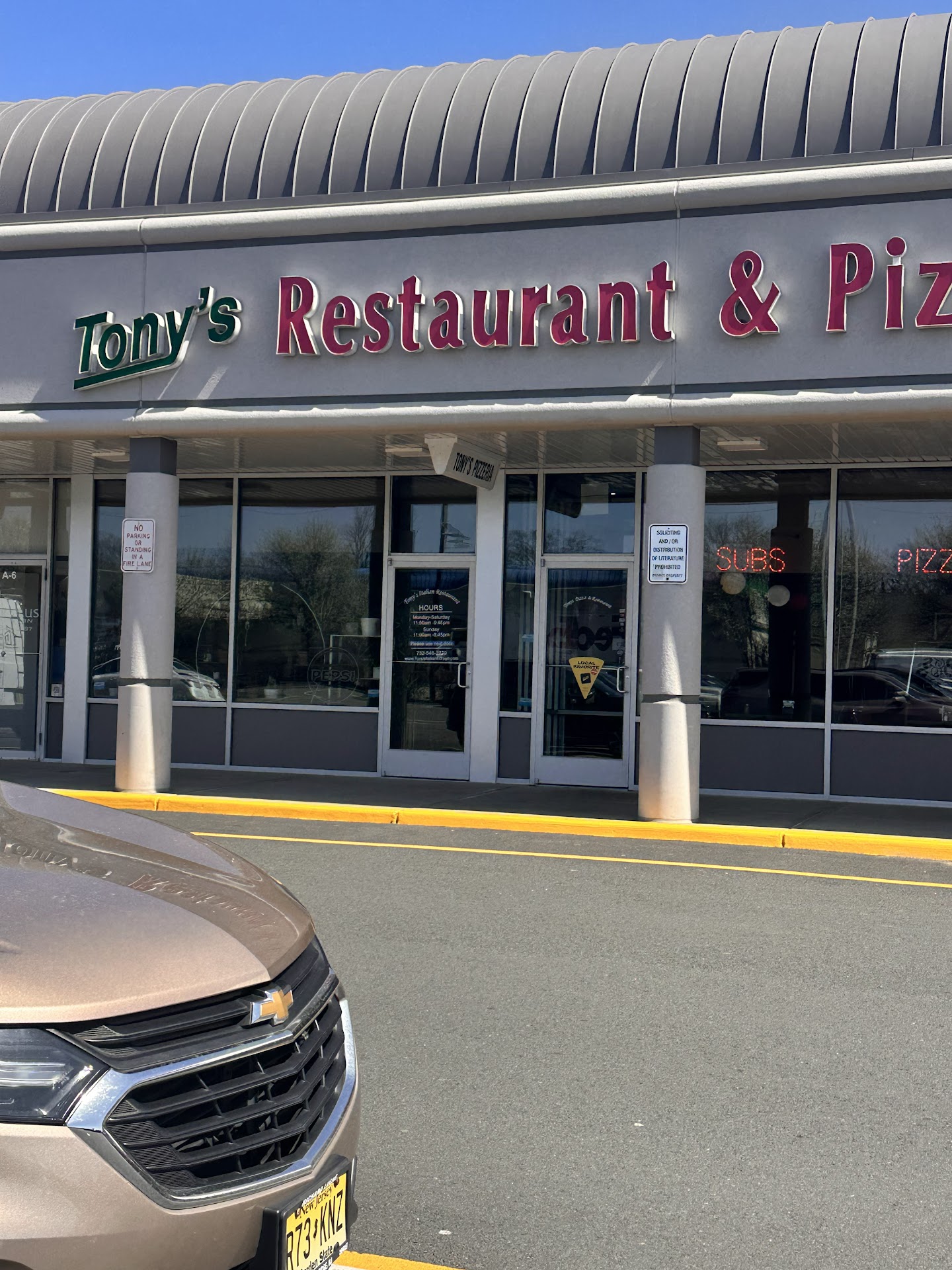 Read moreI LOVE MY Pizza. I grew up in NYC so I know Pizza. Tony's make one of the best pizza's I've tasted in quite some time. My husband and i have already had their Sicilian Pizza (the whole pie). Was really delicious. Cooked to perfection and tasted like the real deal which it was. We usually get their large pie ($15,95) which isn't a bad price but the taste is really delicious. My husband also tried 1/2 of the pie with extra sauce and sausage. The folks that work there (entire staff) want to please you and are very friendly and accommodating. They make your visit pleasant. Today for the first time I ordered to go home a Calzone. For $15.95 which was a large calzone. It really Was huge. I snuck a small piece to see how it tasted. GREAT. They fave me extra sauce without me asking. Can't wait until tomorrow to enjoy that. All of their fiid is nice and fresh. Restaurant is Always Very Clean and neat. Great atmosphere as well. Try it,...