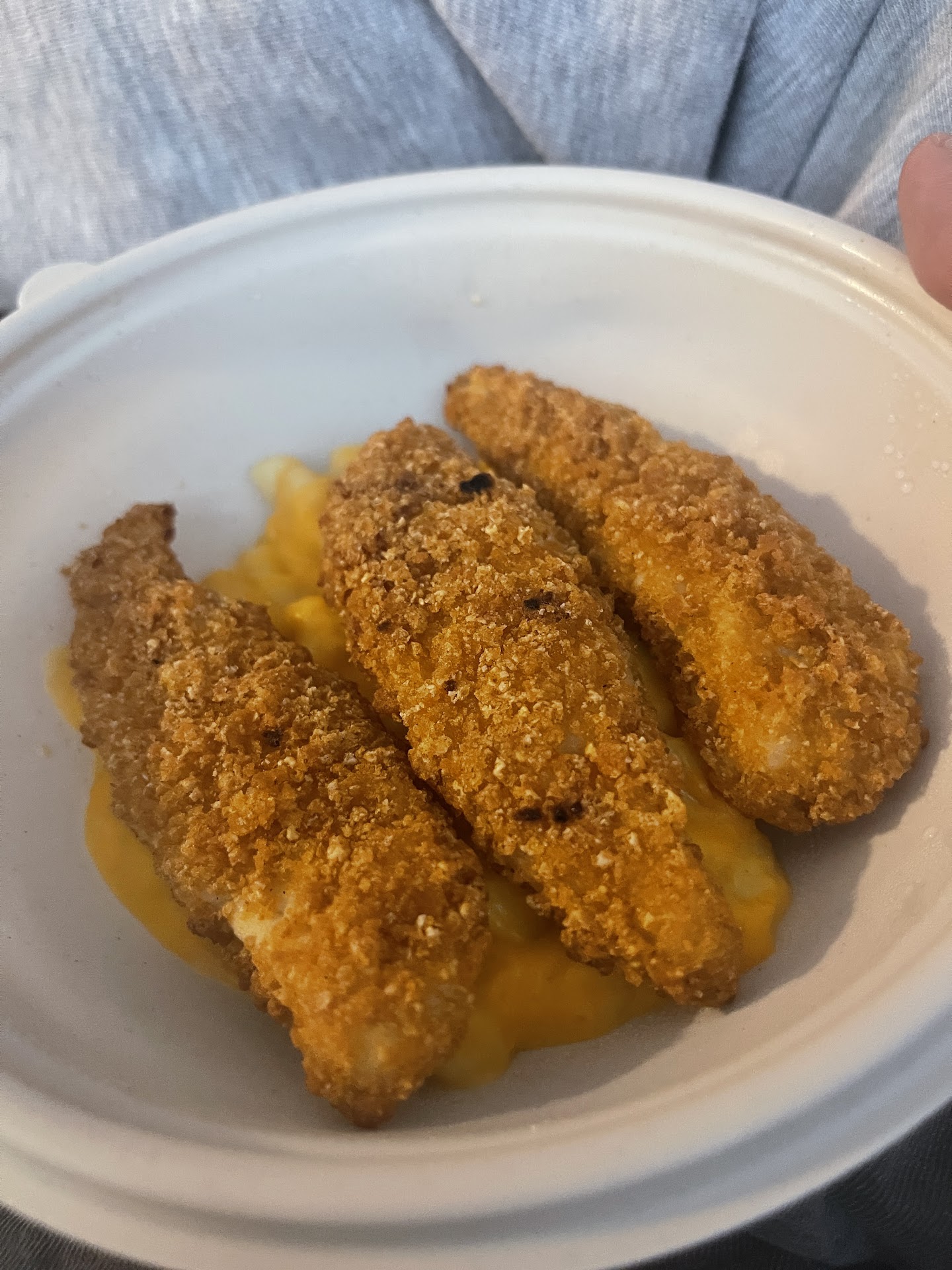 Should’ve learned after the first time, but, I gave them the benefit of the doubt. The girl that prepares the bowls does not fill the bowls at all. This is supposed to be Mac and cheese WITH chicken strips and together they barely fill half the bowl. SMH