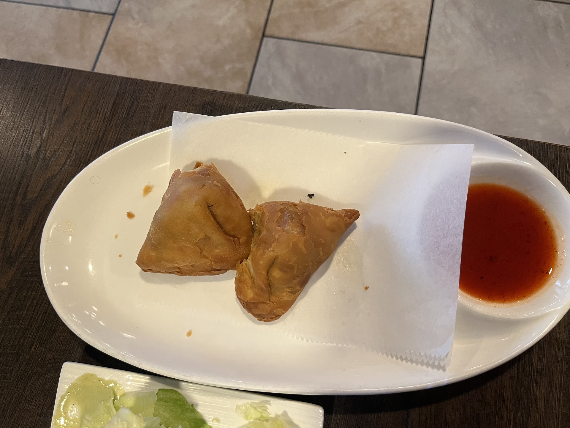 The veggie samosas were crispy on the outside and the filling was delicious with the right amount of spice and very little heat.