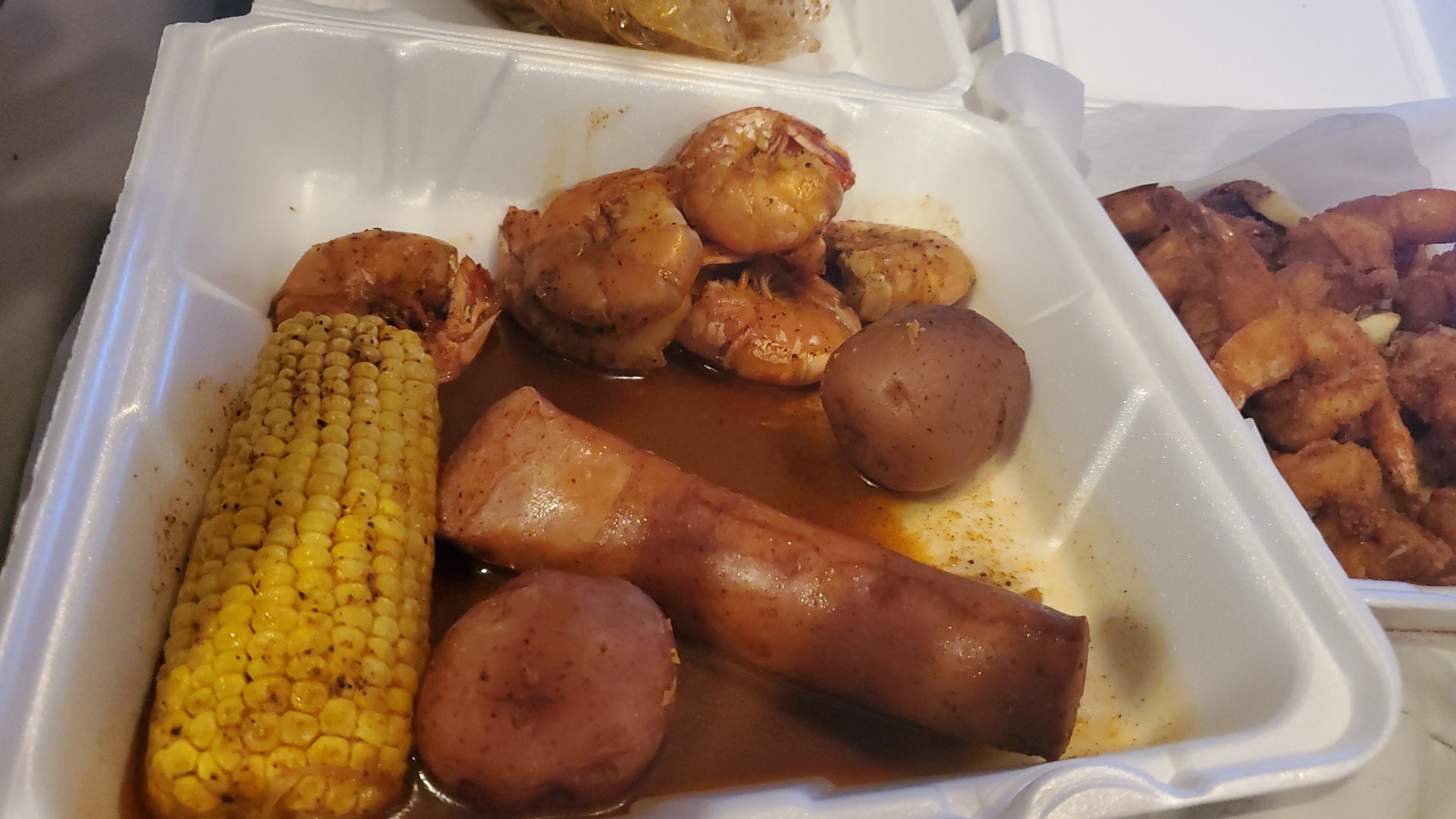 Read moreI came today for the first time with my friend. It was $40 for a snow crab boil. I was told on the phone by the host that it was $20 for a pound which is crazy so I double checked whenever I got to the restaurant and it was 40 which is fine. I really wanted crab legs and they were very Good. I added shrimp and I also got hush puppies. The hush puppies were a little spicy, but they were very good. The corn Was maybe over boiled but it just did not have any taste but I think that’s because the garlic butter flavor that I got did not taste like garlic. It basically just tasted like oil. With a very small tiny amount of garlic in it. There was barely any flavor. There was a lot of oil in it though so it just honestly really wasn’t that good. I really wish there was a better garlic butter sauce. that definitely let me down. I think I would’ve had a better time if the sauce was better. I think for $40 I definitely got an adequate amount of crab legs so I was not upset about that price. I was upset that the potatoes and corn were gross though I enjoyed the shrimp, but again they didn’t really have any flavor and our server was not that great. We had Crystal for some reason with four tables. She was in over her head. But that should be normal for a server one table left so she technically only had three and one table was served way before me and my friend were even served. We had to sit there and constantly wait. Toward the end of when we were leaving she did get very busy. After a rough start with her, she did pretty good throughout the rest of our meal. Overall, I paid $63 for a lot of crab legs hush puppies and a drink so I feel like that’s just a little bit on the higher end but honestly, I think the price was OK. I just really wish the sauce would have...