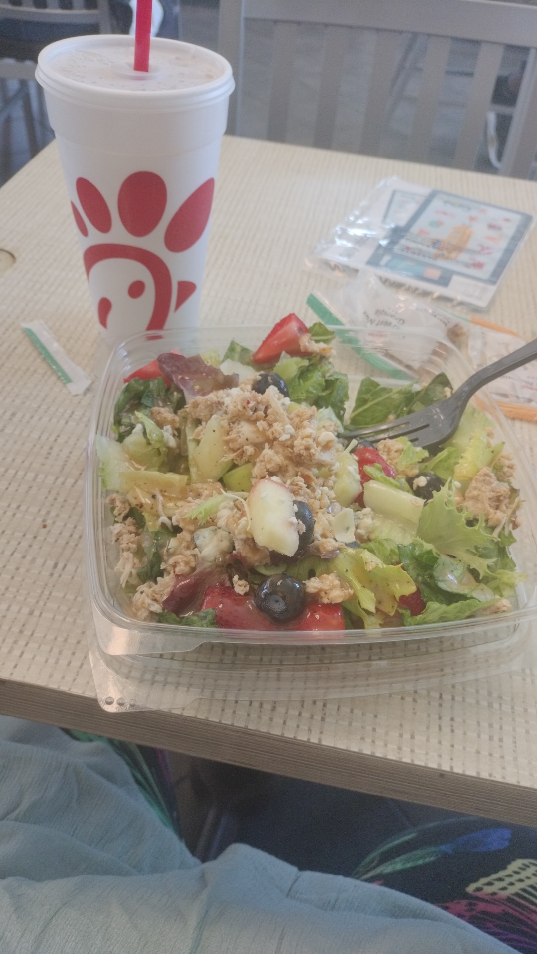 Read moreThis location isn’t my favorite and maybe ice set my expectations too high. We stopped for a quick dinner on Tuesday, and wasn’t impressed with the service. The kid was kind of rude and was shouting a conversation with another employee while trying to take our order. This morning, my husband and I made a stop at Whataburger for breakfast, but was told it would be a wait for biscuits, so we hopped on over to CFA. After sitting at the speaker box behind another car for a minute, we decided to leave, but the person in front of us went to the window so we were blocked in. After a bit, we were able to place our order at the window, and asked to pull up and wait for our food. After watching several cars order and leave, we called the store and no one answered. I went in and was completely ignored. Finally, our food was delivered to our car. We pulled in to CFA at 6:01 and left at 6:20. We opened our box of chicken mini’s to find they hadn’t even been assembled. 🤦🏻♀️ The food was still delicious, but the service here just...