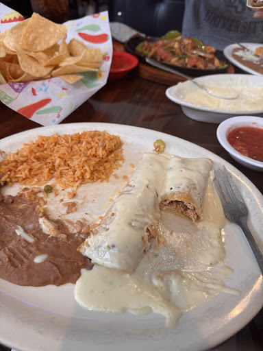 I had the Aranda's Enchiladas. I will say the plate presented was very pretty. So without any cheese or anything inside to hold the thin steak and onions into place, when I cut into the enchilada it just completely fell apart. It is covered in cheese sauce, but again with the consistency of water it does nothing to hold it together. So basically I had a plate of steak and onions with watery cheese and tortilla. The steak had little to no seasoning at all and it really wasn't that good. The rice that came with the plate was really fluffy and moist, but lacked in flavor as well.