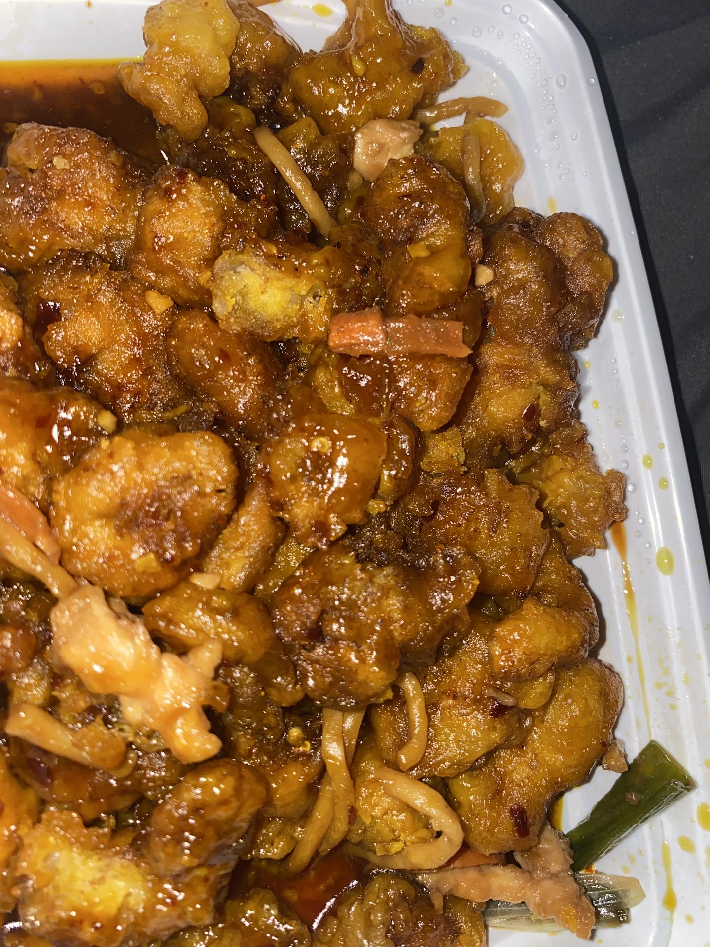 Read moreThis was my 2nd time ordering from this place. I chose to try them out the first time after repeatedly getting sick from food from another Chinese restaurant that was supposed to be MSG free. I'm allergic to MSG and shell fish. China King advertises that they are also an MSG FREE establishment. Well, the good news is, I didn't get sick after eating there the first time or this time either! The food is good too. I can't say that it is the best Chinese food here in Edmond, but it is very tasty! The order I placed today was for delivery. I called to place the order and spoke to a man named Randy. He was extremely friendly and made sure that my order was correct. I wanted to order a PuPu Platter but it has fried shrimps in it. I asked to substitute 2 teriyaki chicken sticks the 4 jumbo shrimps since I am severely allergic to Shell fish like I had done the time before. Randy asked the owner and I could hear her telling him they don't allow Substitutes. Ok, well they allowed it the first time I ordered from them so, I didn't understand why they would not allow for it this time. So, I just ordered 2 egg rolls and some sweet and sour chicken instead of the PuPu Platter. The rest of the order consisted of Sesame Chicken, Pork Fried Rice, Beef Chow Mein, and some Egg Drop Soup that my daughter just had to have. Randy, the man who took my order, also delivered it. He was courteous, friendly and professional. I left him a nice top! Upon inspection of the order, not only was the food nice and hot, there was more than enough food to feed 4-5 people! My daughter and I had a lovely lunch and we will be able to make a nice meal for our dinner This evening with everything that was left over from our lunch! I will order again from China King. They've definitely earned my...