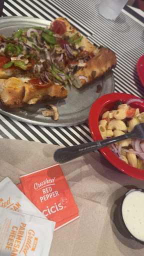 Read moreCici's obviously is not the place you want to go for good pizza (we all know it is typically barely edible) but it is suppose to be cheap and I expect at the staff to be at least decent. Took my family to eat there tonight, the prices have been raised enough that its hardly worth it, but I didnt want to disappoint my kids so we dealt. What I draw the line is at the rude, arrogant staff. They were curt to us, the dining room was filthy, and the girls working spent the whole time we were there gossiping about things I did not find tasteful or family friendly. To top off the unpleasant taste in my mouth, not only from the cardboard pizza but the rudeness of staff, they then treated a young woman who came asking for the pizza they were going to throw away with even more disrespect. It was the end of the night, and there was hardly anyone in there, and I saw them make two fresh pizzas, there was also over half of most pizzas left. They told her that they were going to be thrown away(in 10 minutes) but she couldn't have even one slice! Wasteful and unkind. As a compassionate, Christian woman this is not an environment I want my children in. We will never be...
