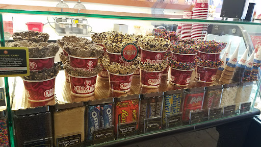 One of the more expensive ice cream options in town but you do get to add one topping or mix-in at no additional cost. With each additional topping costing $1, if you order two toppings it is the same cost as a Signature Creation. The ice cream is decent, very rich but also nicely creamy and comes in a variety of different flavor options. I love adding Peanut Butter to which ever flavor I get here, the most recent visit I had a Cake Batter with Peanut Butter. The staff have always been friendly and helpful at answering any questions we have had. They also allow you the opportunity of trying different flavors before having to commit, so I highly recommend trying a flavor before purchasing it if it is your first time visiting. This location also sells Ice Cream Cakes, they have several options of already made cakes in store but will create custom cakes for birthdays and other special events as well. A two (2) day notice is required enable to have the cake ready in time for special orders. Not only do they have to make the cake it takes at least a day for it to freeze properly. This location is small, so although it is ♿️ wheelchair accessible, the ordering line is also the walk way between tables and the front counter. During rushes, it's challenging to get a wheelchair through the crowd but was at least doable since people were respectful enough to move aside to...