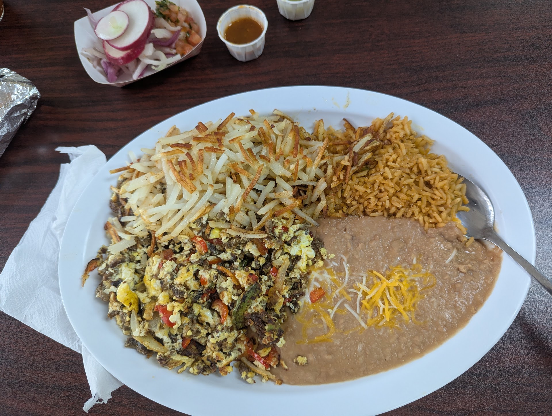 Ā Ā Ā Read moreI read reviews on this place calling it a āHidden Gemā. Parts of it were good but the majority was not. I donāt like having to pay for chips at a taqueria. Major minus. The salsa bar needs improvement. The pico de gallo or salsa Fresca whatever you want to call it had a stagnant smell and had been sitting way too long and was a day away from rotting. None of the salsas were labeled. Am I a mind reader? The other āsauces were watery and runny and not very appetizing. The radishes looked water logged and the jalapeƱos were mostly juice. I ordered a burrito plate. Carne asada. Please see photo. The burrito came with a āsauceā on top which was nothing more than salty red water with chiliās that were boiled to death. I started to get a sodium headache with the first taste. Piece of advice, order burritos without the sauce! The side of guacamole š„ was $3.50 for two scoops. We all know avocados are cheep and that price was inflated. For two to have medium size burritos and a plate of chips we had to pay for and for guacamole and two drinks it was over $27. Thats no bargain. I would avoid this restaurant and save your money. As a Californian I know what good Mexican food is. This is low quality. I have had better food off of a taco truck in San Jose for...