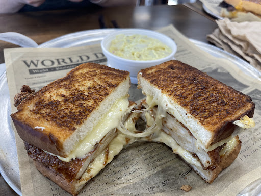 Wow! FINALLY a good sandwich shop in Edmond! (We've been tired of driving to Harvey Bakery for a good sandwich or settling for less than mediocre chain sandwiches.) As a family of 5, we tried: Dr. Pepper Short Rib, Smoky Turkey, Taylor ham/egg/cheese (for our 8 year old) and 2 toasty pb&j's for our 4 year old and 1.5 year old. Everything was excellent. I devoured my smoky turkey - it was so good and filling. The littles had no trouble finishing their pb&j. The triple berry jam was quite tasty. My 8 year old loved the Taylor and ate it all. (When you're paying for an adult priced sandwich, this is a win/bonus.) My husband enjoyed the Dr. Pepper short rib and had nothing bad to say about it. I do think he'll venture on and try others next time though. Each sandwich comes with homemade chips with your choice of seasoning. We also tried the deviled eggs which were very good, and we would get again on an extra hungry day. I had one and let me son eat my other because I was too full after my sandwich to finish it. Cookies and fried pies looked really good, but we were too full to try. My only "critiques" - they serve the sandwiches on really large metal plates/platters. These were cumbersome for my kids. We were also in the middle of the post-church lunch crowd with larger groups. Seating was limited at times, and it would have been easier for everyone to squeeze in without these massive plates. (I saw a family of 4 squeeze around a 3 sided table.) The warmth of the "toasty" pb&j makes it especially messy for young kids. Not sure what one does about that though as the toasty-ness gives it a little something special but also makes it extra gooey. We were wetting a lot of napkins to clean the kids up. The water jug needs to be bigger or located on the soda fountain. They ran out of water twice while we were there. And lastly, I wish there was little bit more seasoning on the chips. Some were seasoned just right, while more of them had little to no seasoning on them. Again, very minor things. Overall, 5+ stars out of 5! I absolutely can't...