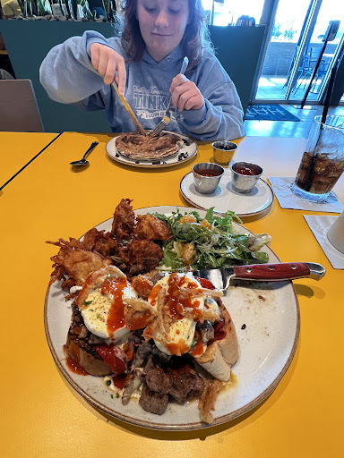 I've eaten at other locations in the past and they were pretty good. This one is new. The good: our server was a super nice guy and as attentive as he could be. They appeared to be understaffed and he never stopped moving. It took a while to place our order then to get our food but that wasn't on him. The place was clean with a nice open feel. The water was good. I know that's a little weird to say but the taste of water at eateries isn't really something to take for granted anymore. The bad: all of our food smelled weird, like bad grease, and had an off taste. I got the traditional breakfast, 3 scrambled eggs, bacon, hashbrown balls (don't remember what they call them) and sourdough toast. The eggs were already salted and peppered and there was a lot. Fortunately I like salt and pepper so the eggs were all I ate. My bacon was barely cooked. I did mention this to our server and he replaced it for me with really crispy bacon but it had that weird smell and tasted gross. The toast was about 2 inches round and about an inch thick and smelled really bad. The hashbrowns might have had good flavor if you could get past the bad grease smell. My buddy had biscuits and gravy and didn't care for it. Said the biscuit was dry and there wasnt enough gravy. He ordered his eggs over medium but they were barely over easy. His comment was "they snotted my eggs" My breakfast was $13 and my buddy's b&g was $12. Neither of us ate even half of our food. 2 stars is because our...