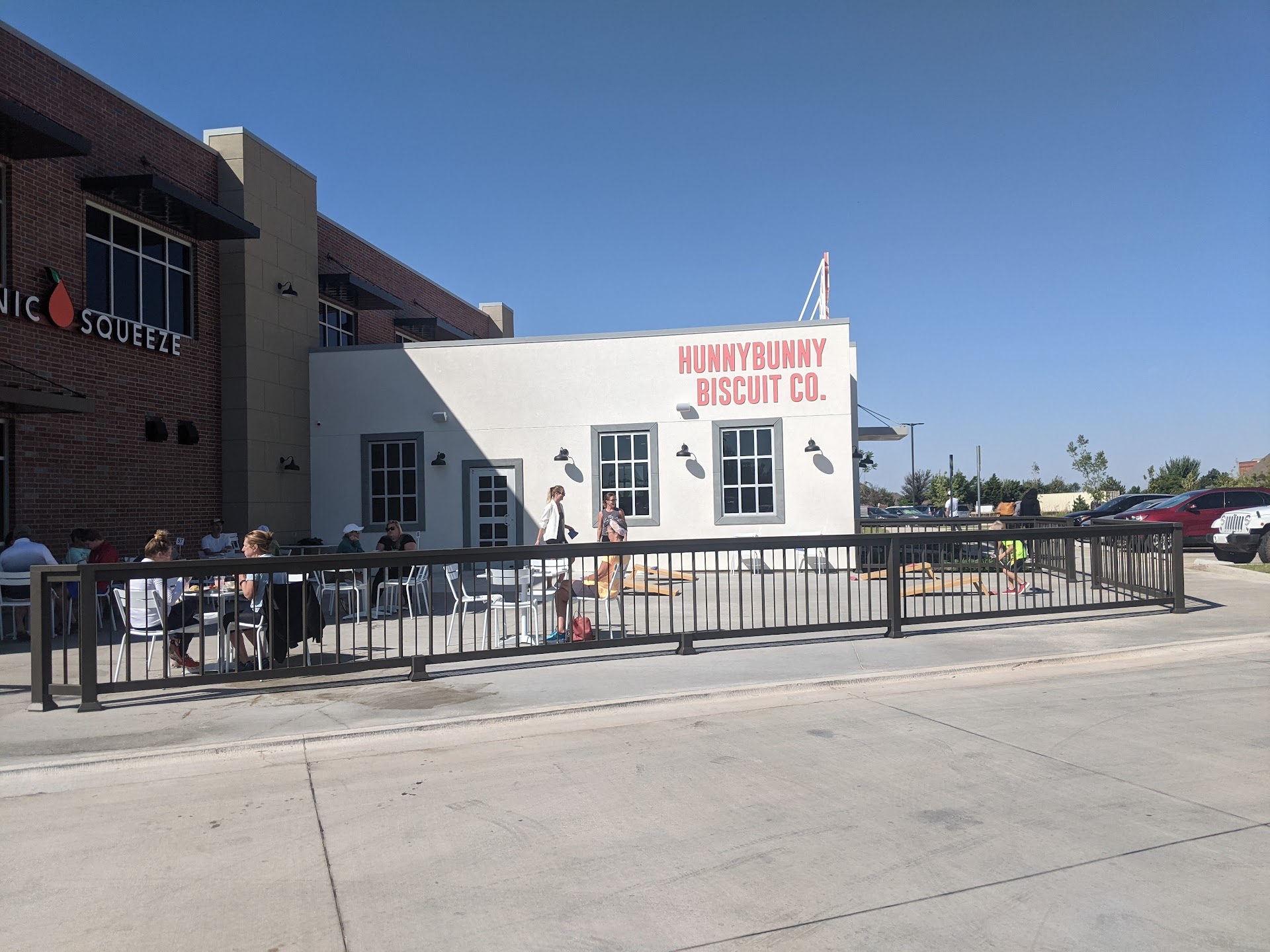 Read moreThis is my first time eating at this location, but I have eaten at the other location before and I feel the same. It's forgettable. Pros-cute place. Great outdoor place to eat and play Cornhole while waiting for your food. Or if your kids want to run amuk while you gossip with your gf during girl time....hit this place. Staff was friendly and kept things moving quickly (counter service, delivering food and bussing tables). We actually had our food delivered by a manger and employee came by and grab out dirty plates when finished. The chicken was crispy and had nice flavor. Cons-Food is just forgettable for what it is. I have had way better biscuits. It was crispy on the outside, but yo moist on the inside. There is a difference between soft and moist and if you put wet ingredients on moist(think jelly or gravy), you have a goey mess in your mouth. The strawberry jelly or jam was a runny mess. It didn't hold like a breakfast jelly or jam should. The peach was good. Grape was again, forgettable. Nothing to go crazy about. If you go, go for the outside and the staff, but the food is just meh when OKC has such a strong...