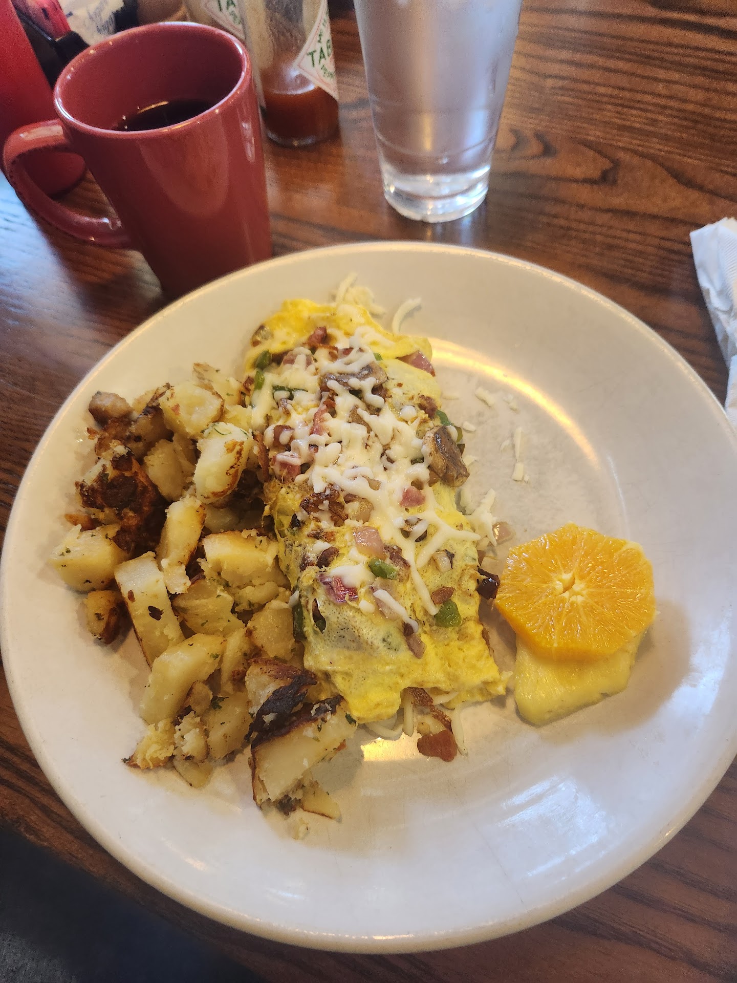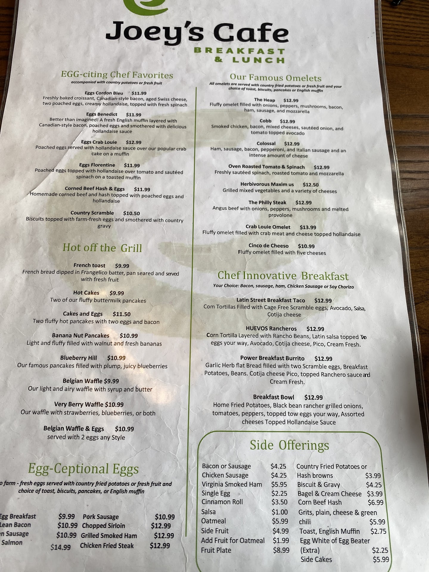 So, once again the wifey and I decided to enjoy a nice breakfast out. This time, at Joey's Cafe in Edmond. Upon entering, we waited about a minute or so before being greeted and seated. Not how I would've preferred our experience to begin, but not the biggest deal.