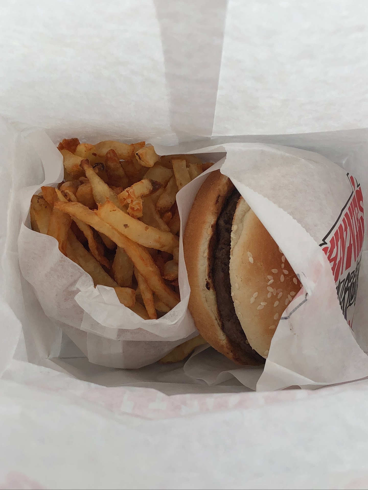 Now, to the meal: the hamburgers are the best I have ever had. When you first look at the burger, it is visually appealing and larger than your standard burger. I always order mine with their signature shredded cheese, ketchup, pickles, and sometimes bacon if I am in the mood. By the way, they don't call it Johnnie's Charcoal Broiler for nothing. When you first bite into the burger, you can taste the flavorful char on the meat immediately. The taste of the beef will make you think of Burger King as nothing more than a bad choice. The shredded cheese complements the patty very well, and the pickles always add a extra bit of flavor. The French fries are very underrated too, as they have just the right amount of salt on them without making them too salty. Overall, a very delicious meal that will beat out any fast food restaurant in a landslide.