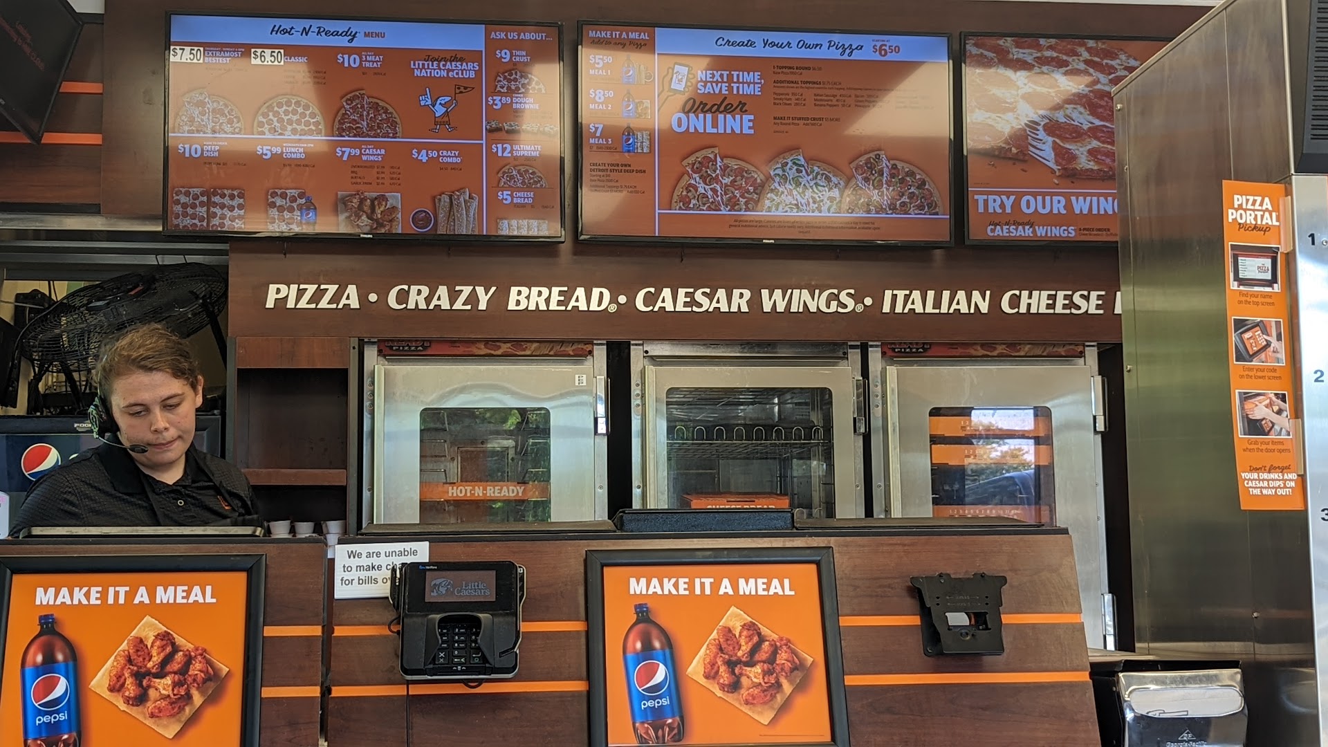 Ā Ā Ā Read moreWe have ordered from this Little Ceasers for the past few years. We ordered online today to pick-up at the Kiosk. The lobby was full of people and we (me, my wife, and our son) were parked out front waiting for our pizza to hit the self serve Kiosk. It gets put into the kiosk and then they lock the front door and Make everyone go around the building to drive through. People come to the door and the employees just shake their heads and make the āgo aroundā gesture to people. While this is happening employees are bringing peopleās pizzas out to their cars I stop one employee to ask if I could get my order thatās already placed and waiting in the self serve kiosk. He said āno you have to go aroundā. Waited 30 minutes in line while our pizza sat on a warmer but they kept bringing other peopleās orders out after they said they couldnāt bring the already paid for order out. Guess Mazioās just got a...